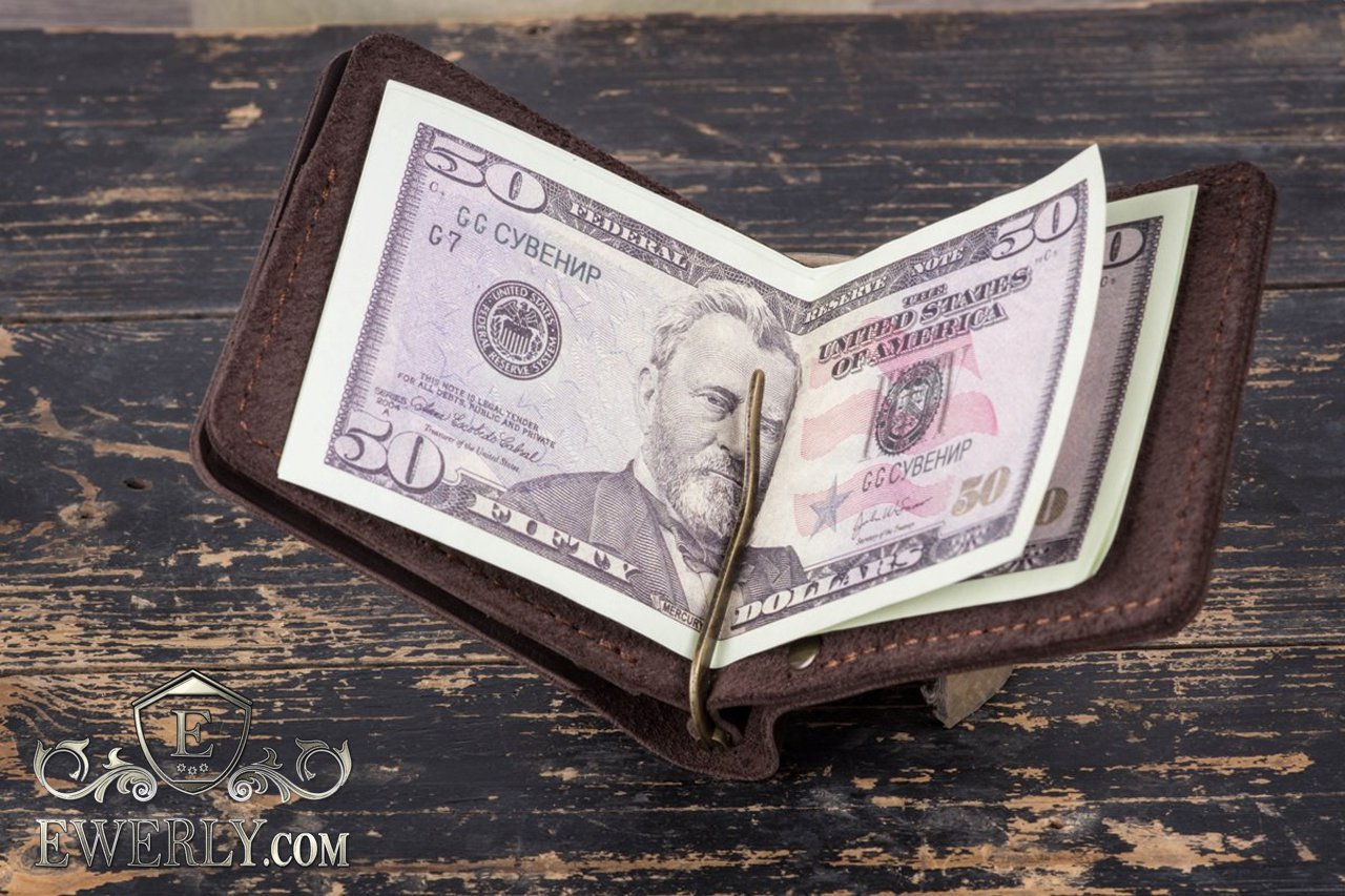 Зажим для денег кожаный коричневый 11054TJ