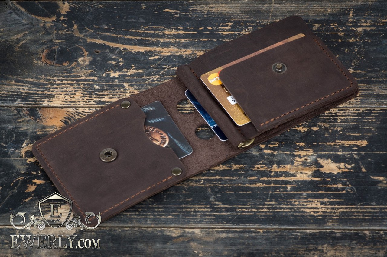Имеет три отделения для банковских карт / визиток и один раздел для купюр (вмещает все номиналы).