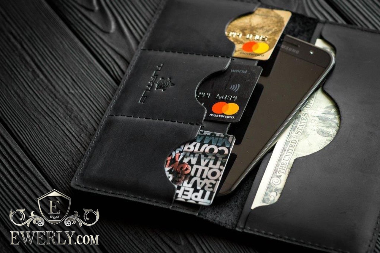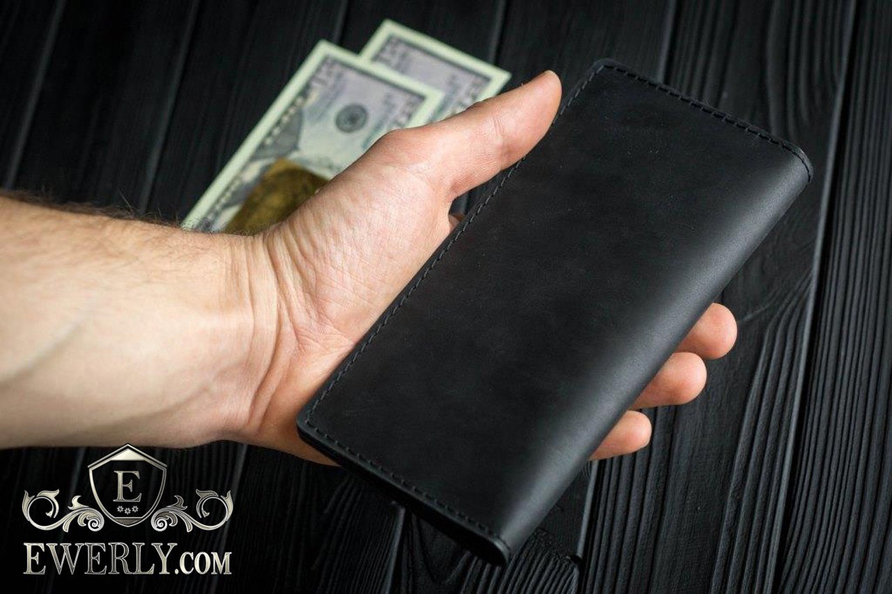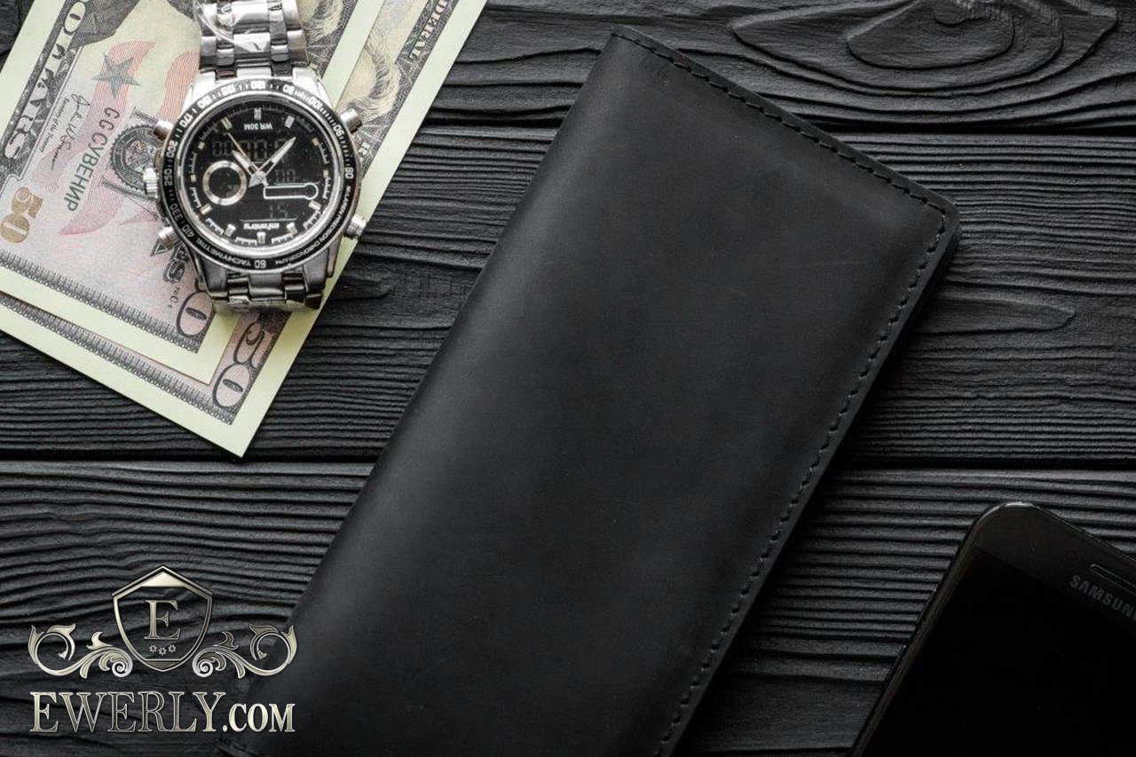 Мужское кожаное портмоне - кошелек черный 11015KP