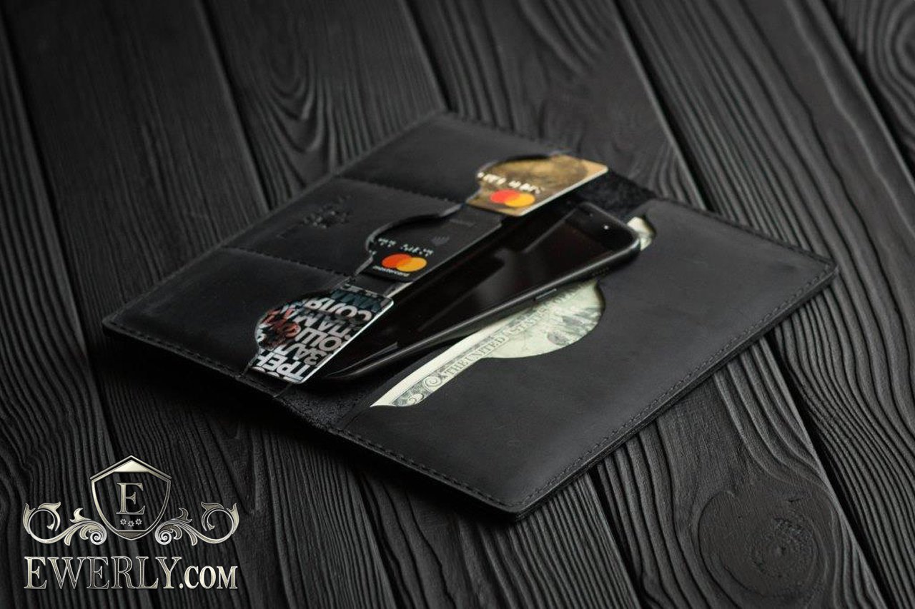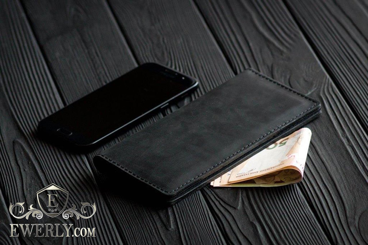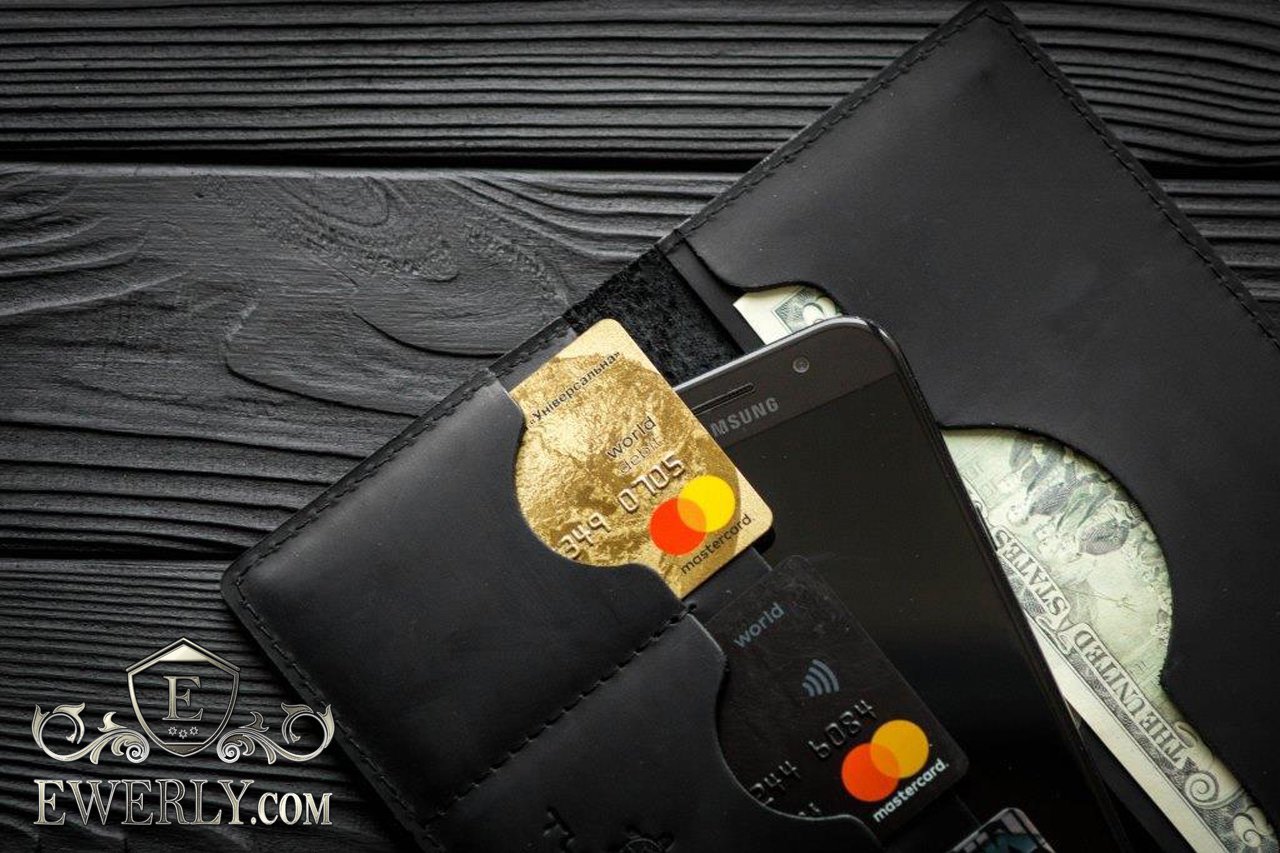 Мужское кожаное портмоне - кошелек черный 11015KP