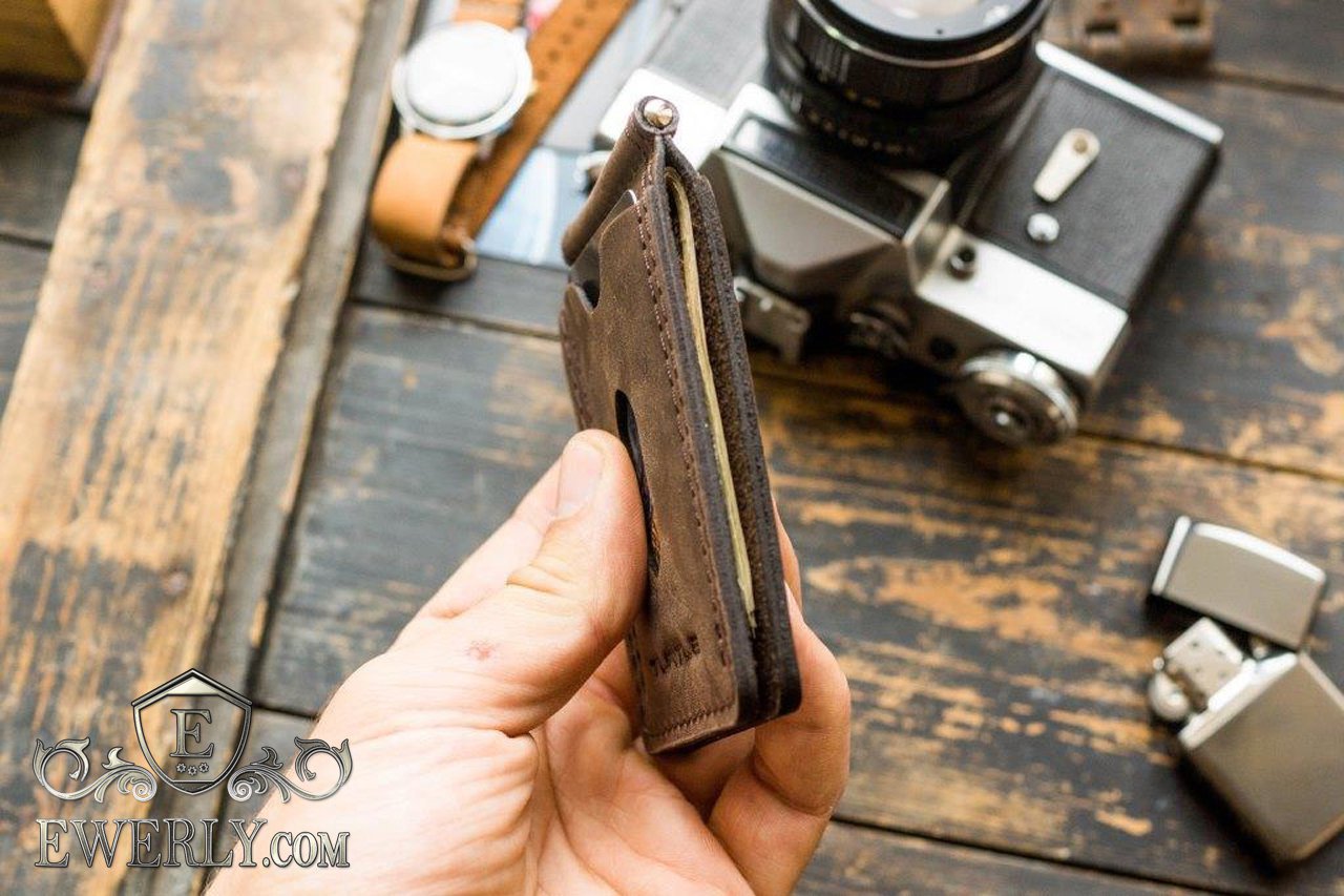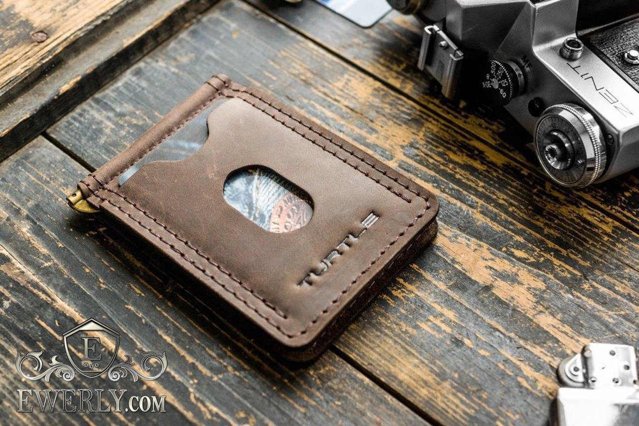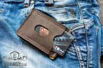 Зажим для денег купюр кожаный коричневый 11031QJ
