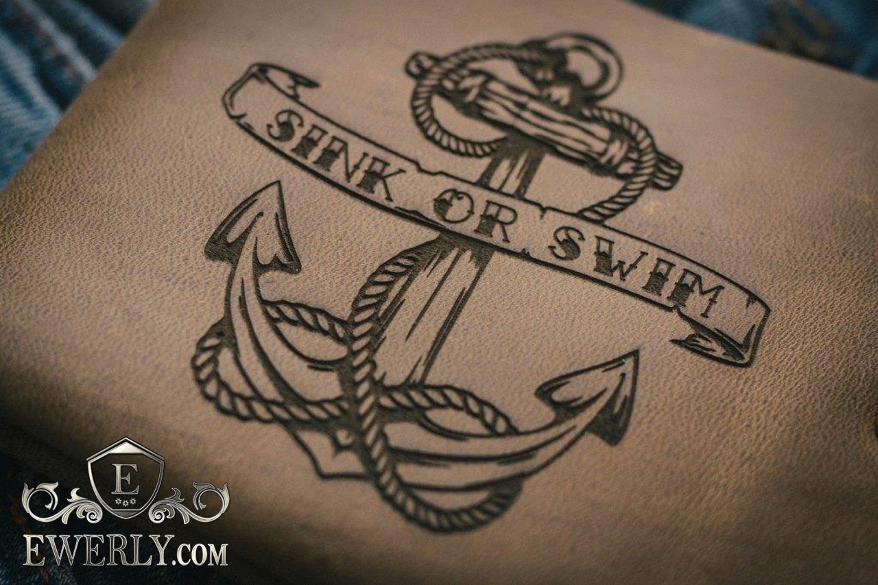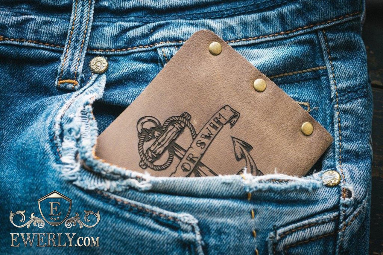 Мужской кошелёк из натуральной кожи с изображением якоря