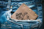 Бумажник имеет одно отделение под купюры всех номиналов и два отделения для банковских карт / визиток. Всего вмещается 4-6 карт в зависимости от их толщины, закрывается кошелёк с помощью двух кнопок изнутри.