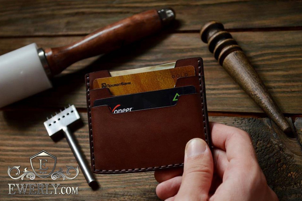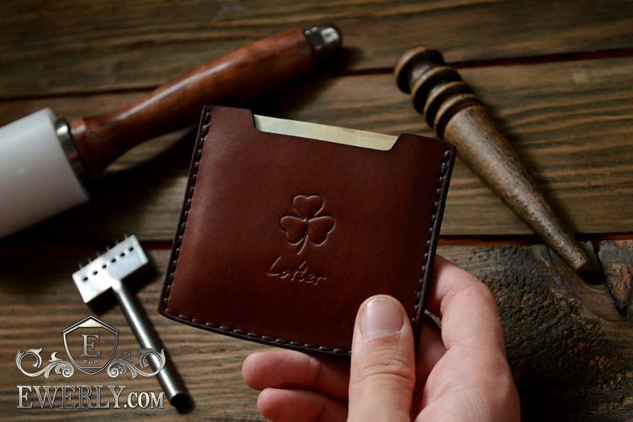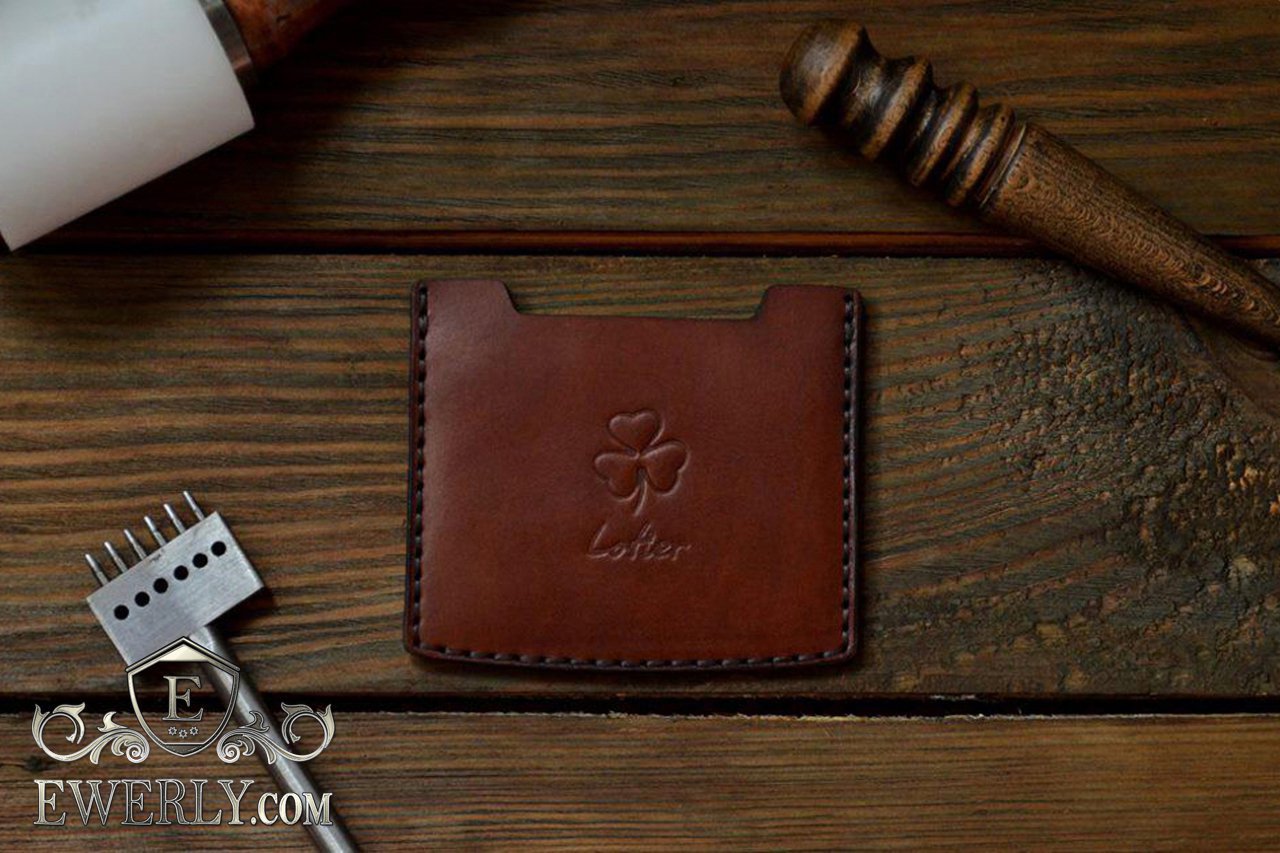 Максимально простой мужской кожаный зажим, имеющий необычно простую форму, вмещает до 4-х банковских карт / визиток / водительское удостоверение, а также наличку.