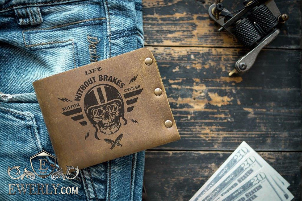 Мужской кожаный кошелек (изображён череп в шлеме) 11074RA
