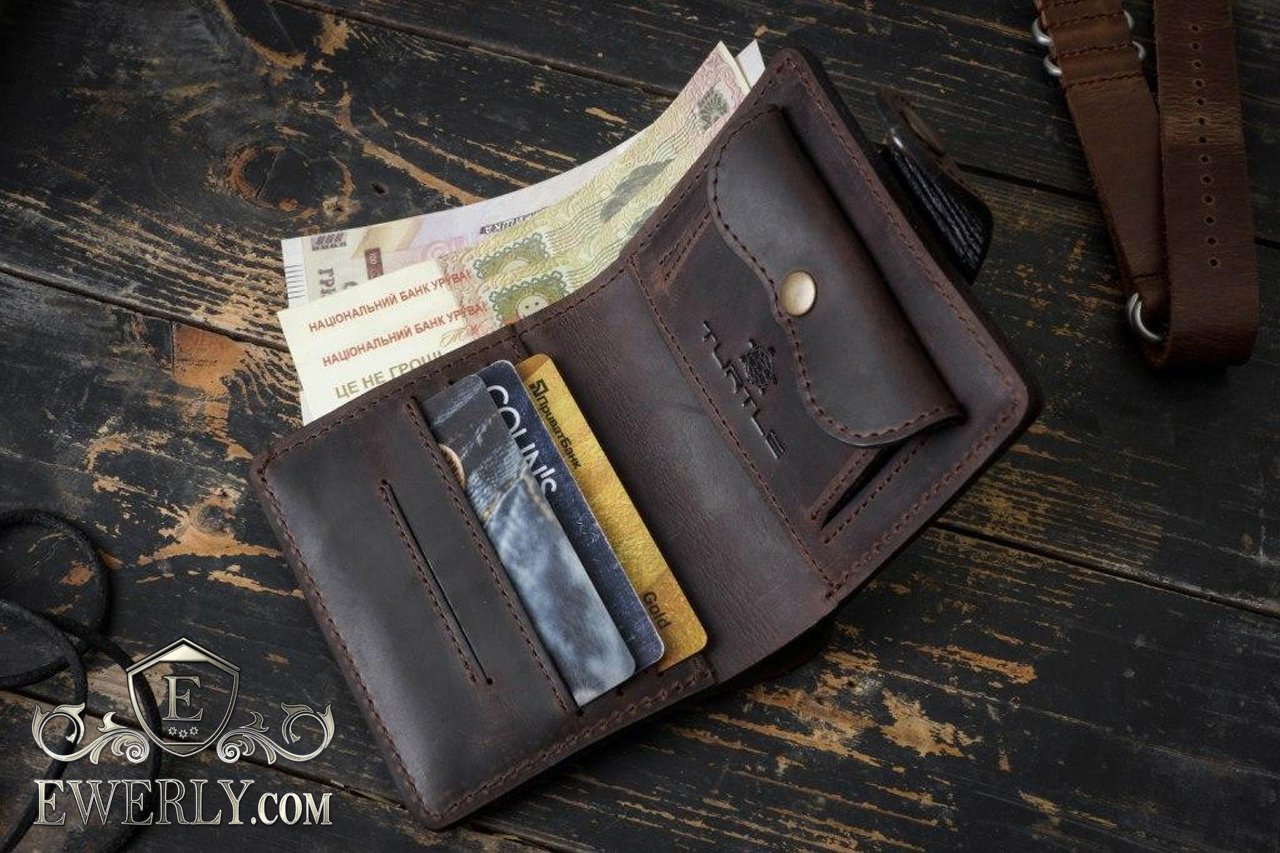 Мужской кошелёк - портмоне с большим количеством отделений, монетницей и подкладкой внутри, что за счёт структуры делает его многофункциональным бумажником классического формата.