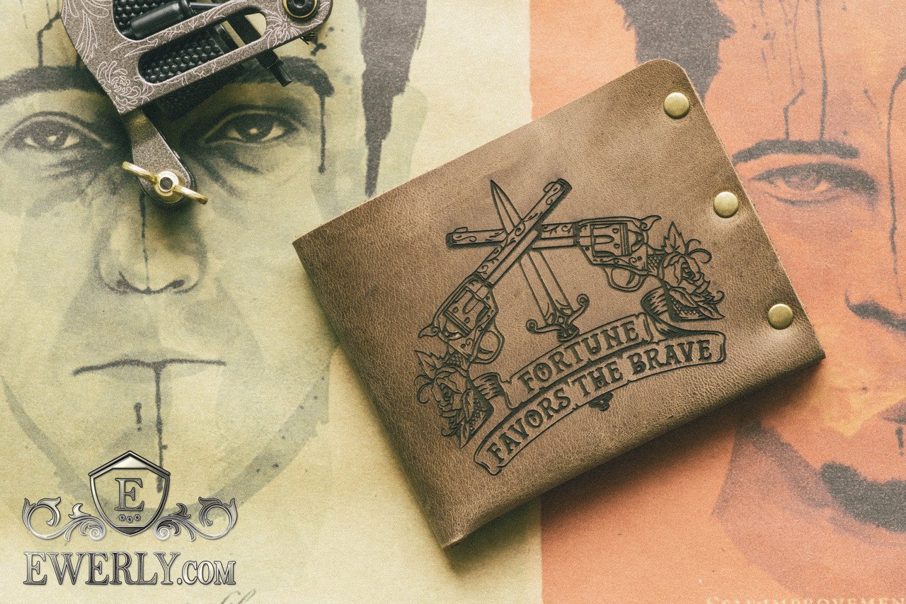 Полностью выполнен из натуральной кожи и металлических заклепок. Эксклюзивное изделие ручной работы, имеет эффект потёртости и лёгкой небрежности. Рисунок нанесён на кожу с помощью лазера (лазерная гравировка). Изготовлен в ограниченном выпуске.