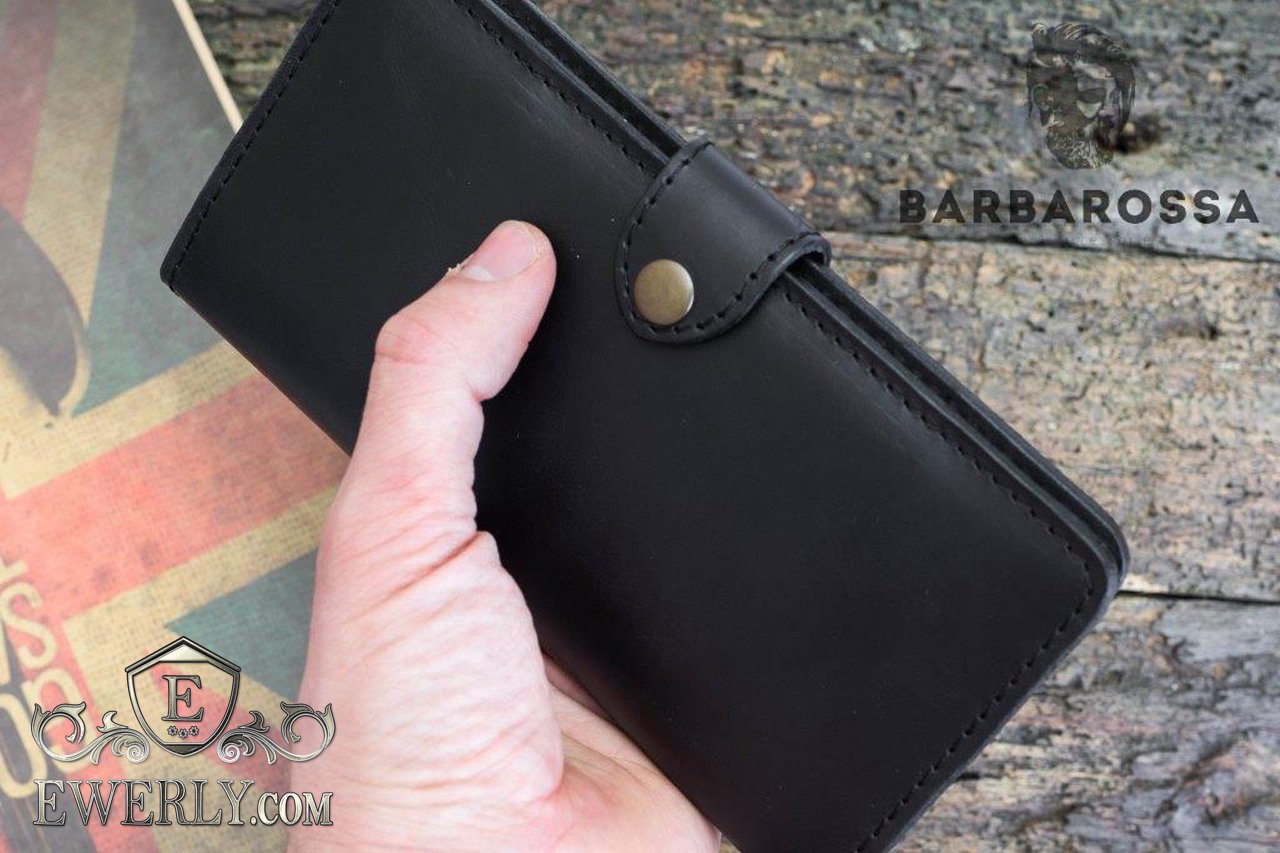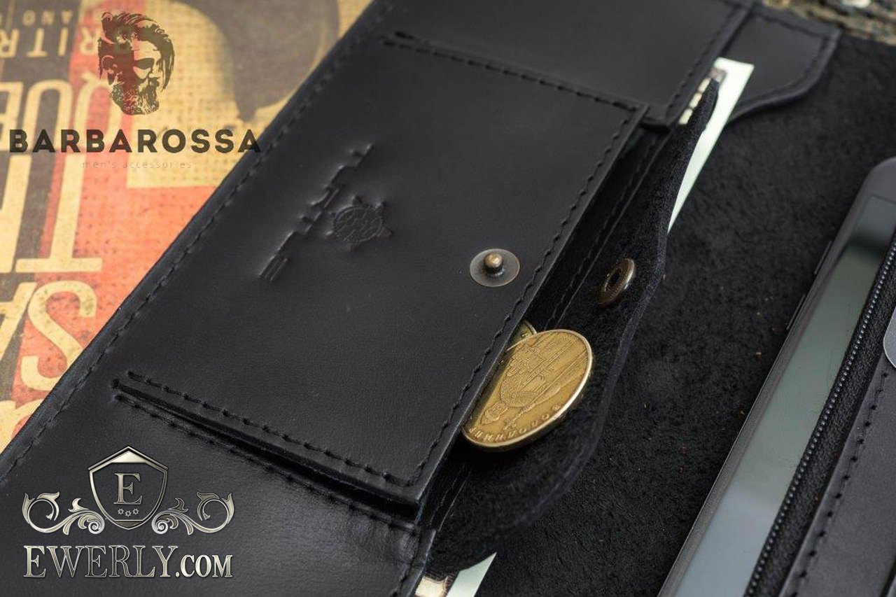 Кожаный портмоне - клатч мужской чёрный 11044EV
