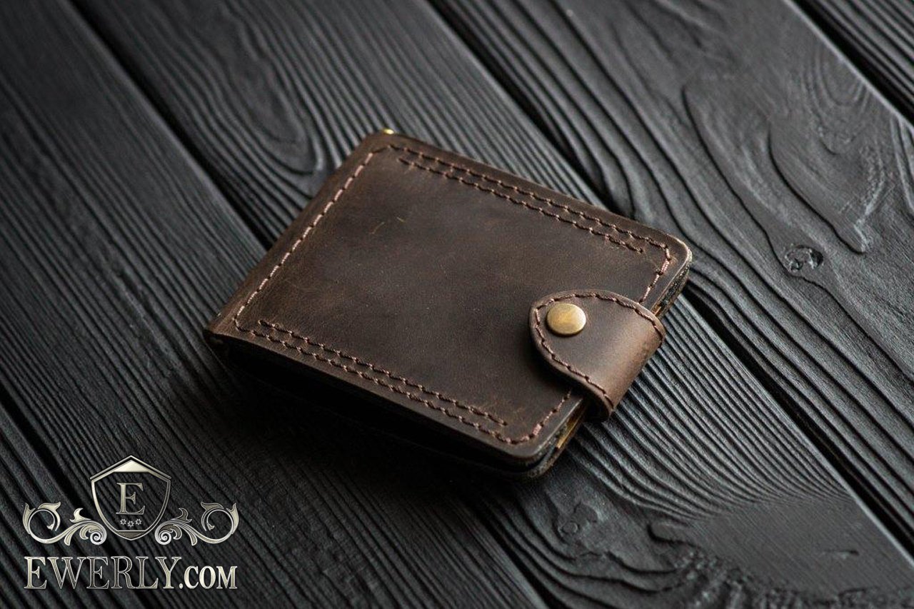 Зажим для денег кожаный коричневый для мужчины 11024KD