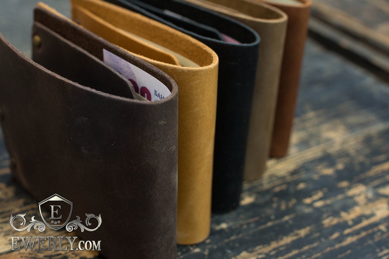 Данная модель кошелька изготовлена из натуральной винтажной кожи тёмно-коричневого цвета, на которой могут оставаться естественные царапины и потёртости. Любая такая царапина легко затирается рукой. Является максимально простым и доступным по цене бумажником. Имеет два раздела под карты или мелочь, а также один раздел под бумажные деньги, складывается вдвое и вмещает купюры всех размеров. Ничего лишнего!