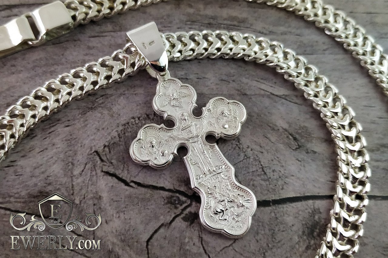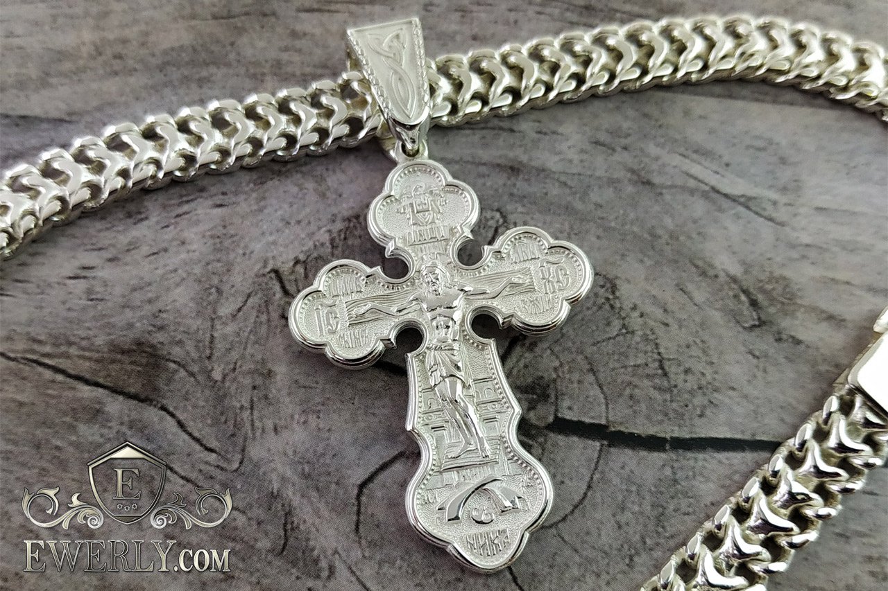 Мужской православный нательный крест из серебра