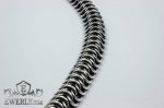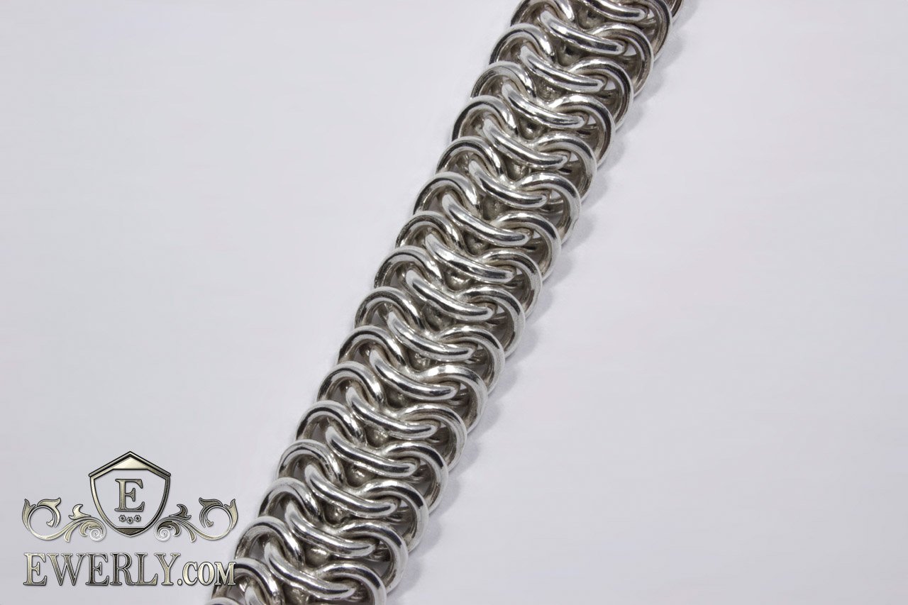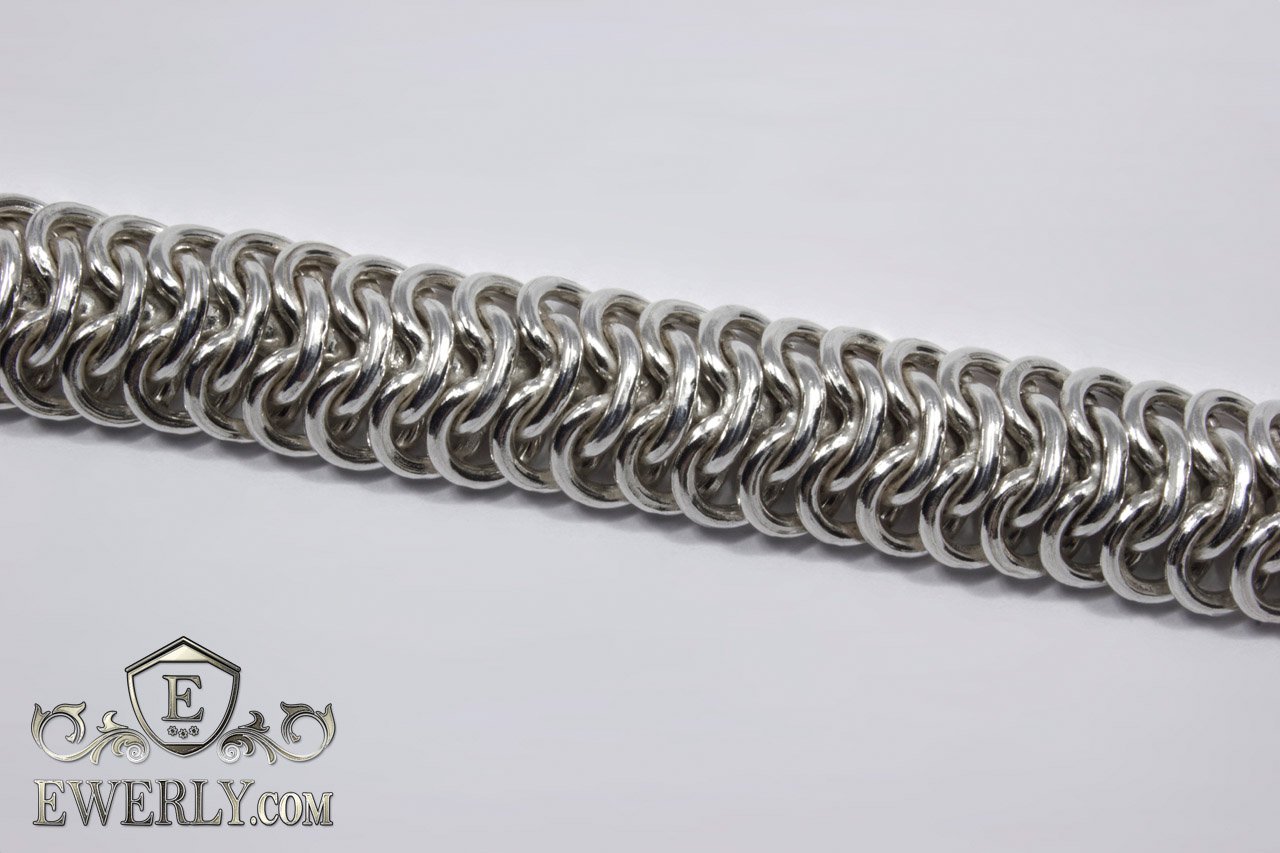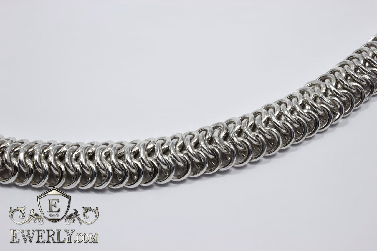 Полновесное плетение.Как ни странно прозвучит, но название «Чешуя дракона» пошло от названия детских браслетов из цветных резинок, которые изготавливают по точно такому же принципу как и серебряные цепочки и браслеты из этого плетения. Не смотря на это, в целом, серебряные изделия из «Чешуи дракона» совершенно не выглядят по-детски, более того на мужчине данное плетение смотрится более строго и серьёзно, а на женщине наоборот пушисто и нежно.