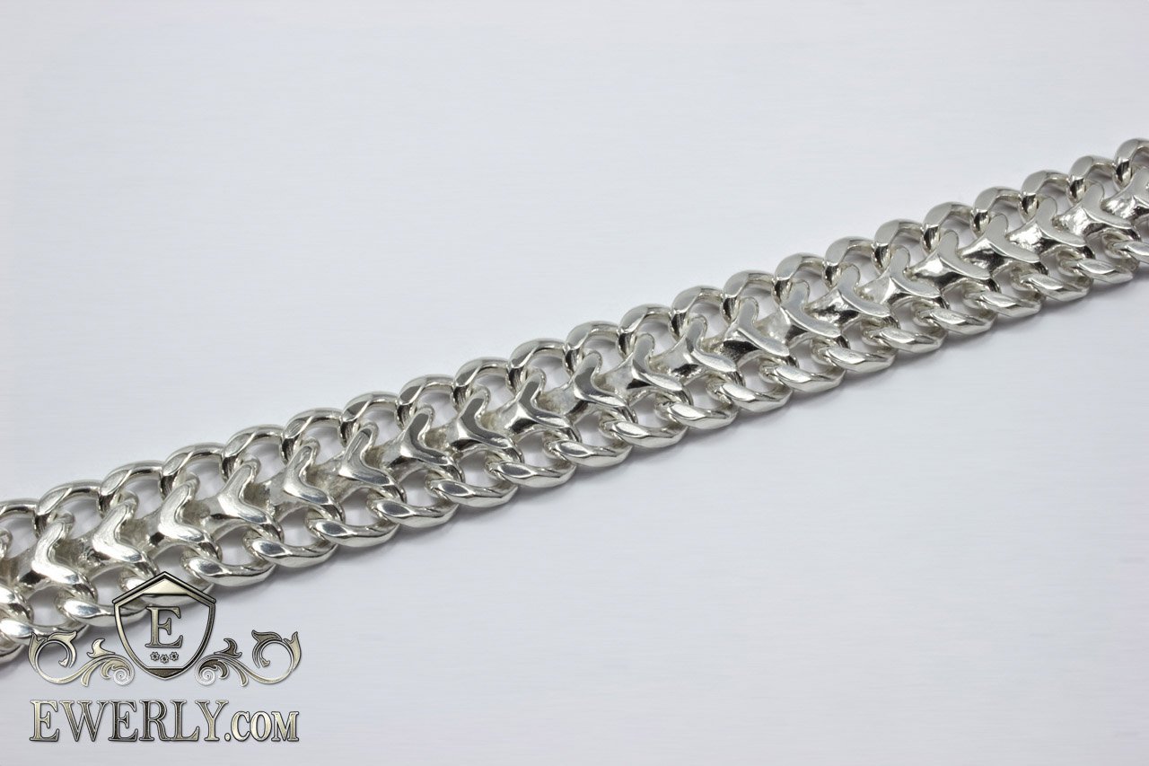 Полновесное плетение. Довольно изящное и в целом красивое плетение. Отлично подходит и мужчинам, и женщинам в качестве серебряного браслета на руку. Серебряные цепочки же из плетения «Трактор» предпочитает преимущественно женская часть общества.