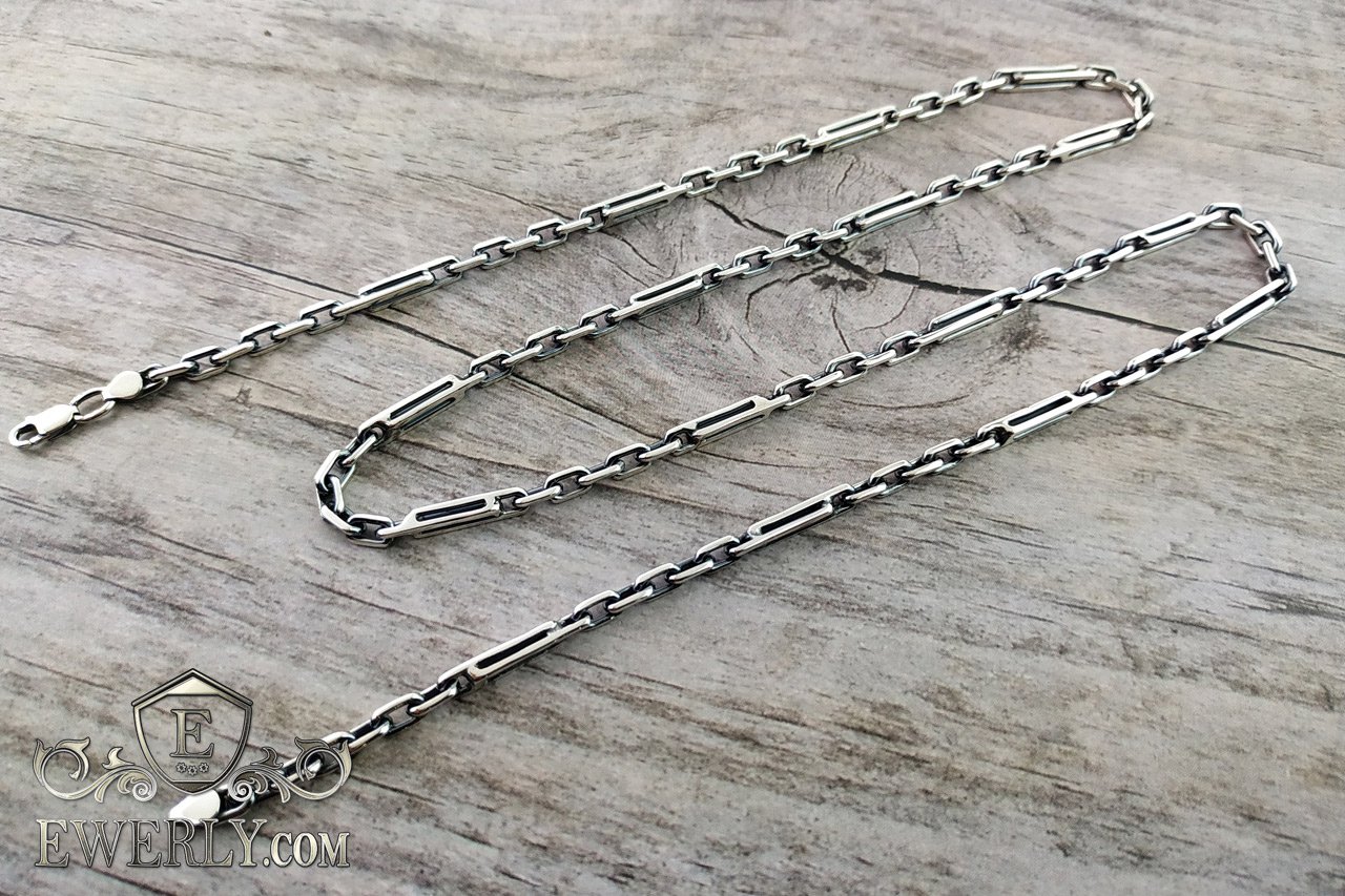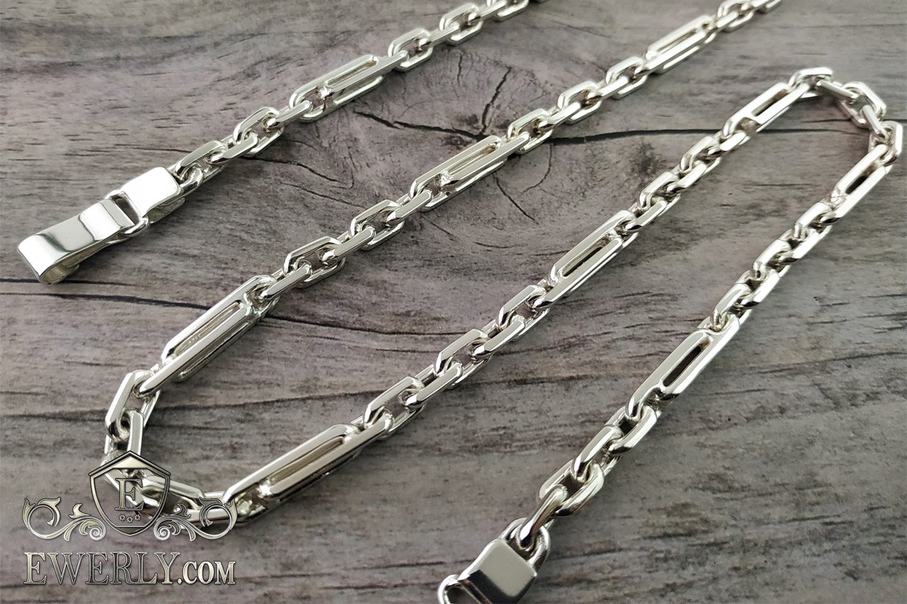 Видео в HD качестве - Плетение Комбинированный якорь - серебряная цепочка