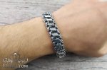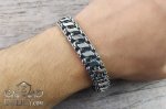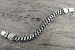 Полновесный браслет. На фото изображён серебряный браслет Двойной бисмарк с накладками. Обратите внимание, что можно заказать браслеты с накладками другой формы, а также браслеты из других плетений.