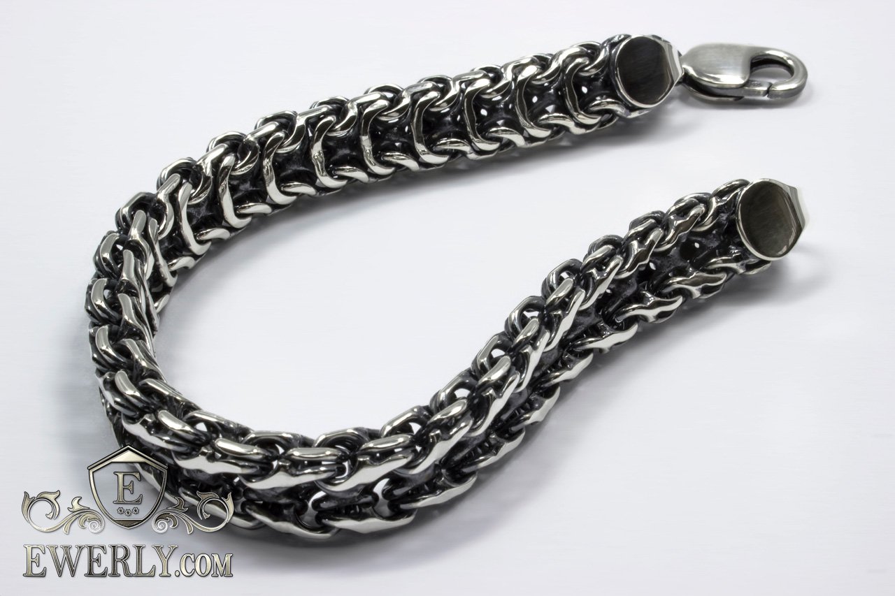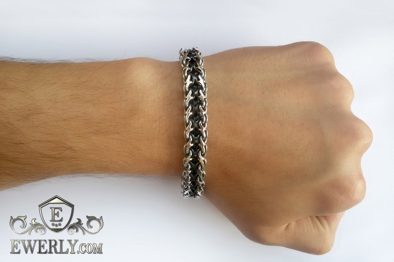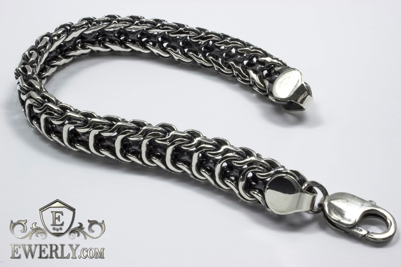 Браслет из серебра - двустороннее плетение Фантом (Рамзес + Двойной ручеёк)
