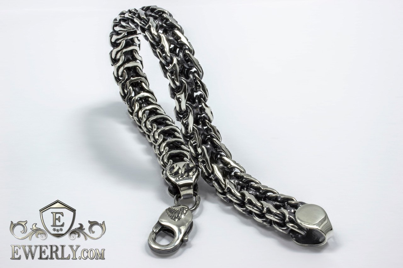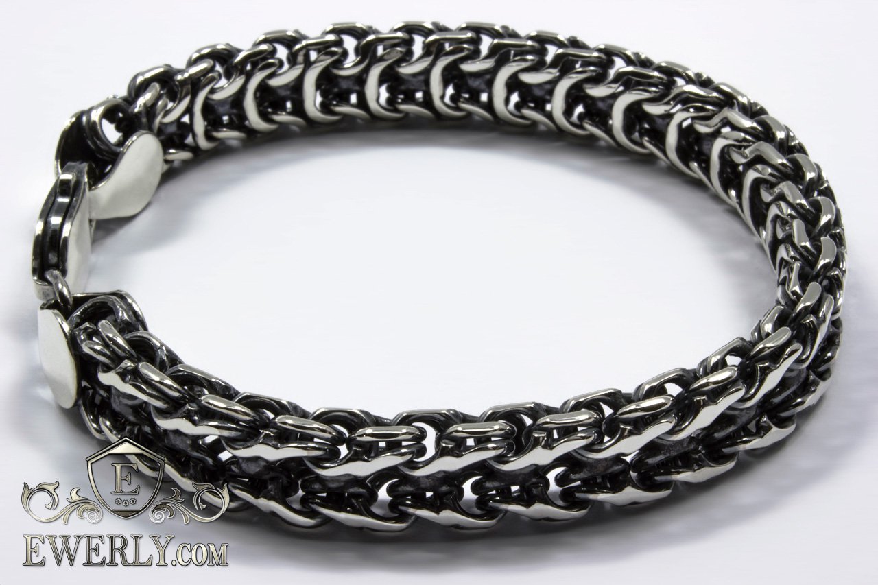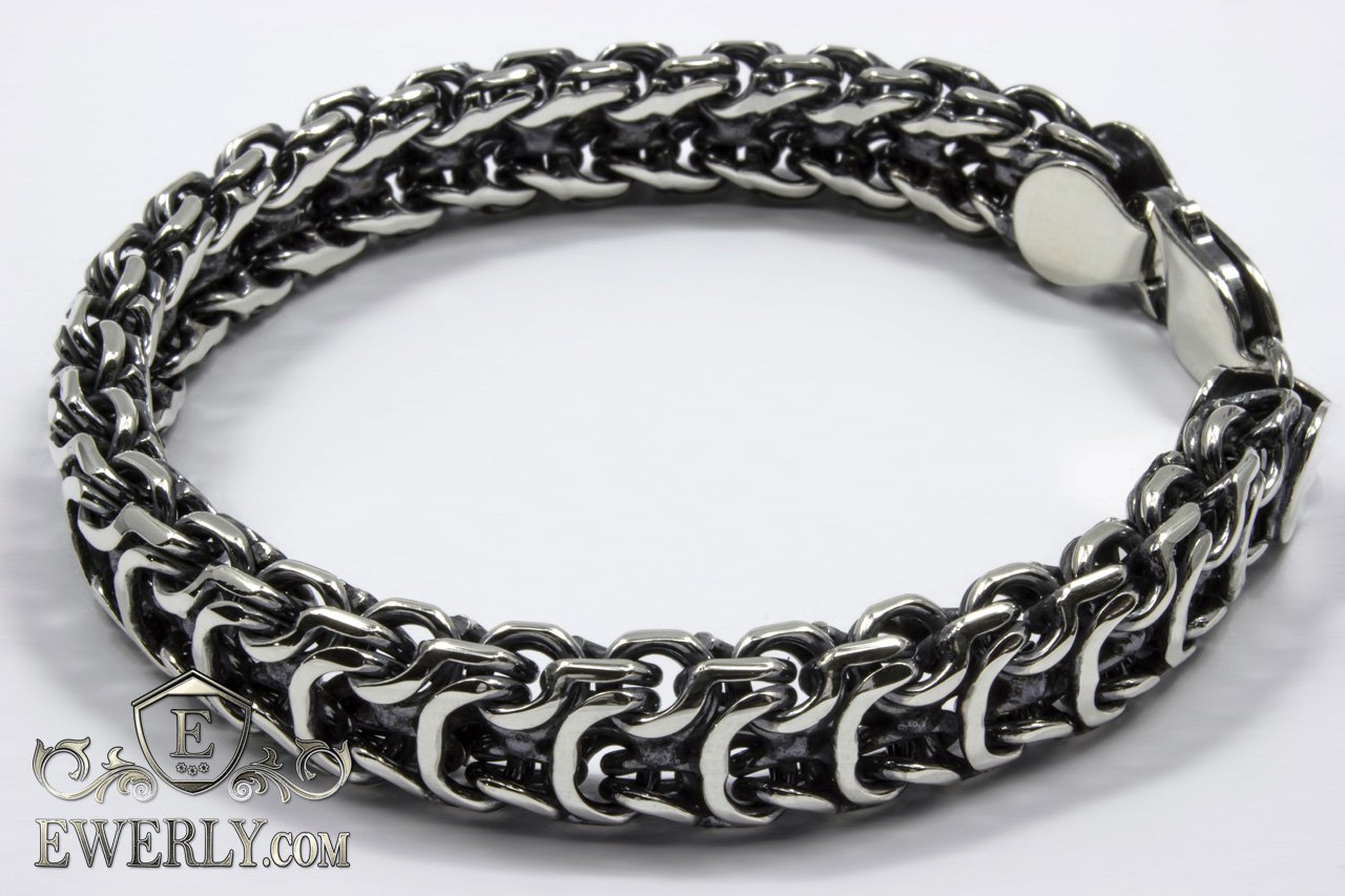 Браслет из серебра - двустороннее плетение Фантом (Рамзес + Двойной ручеёк)