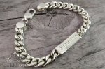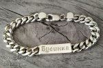 Полновесный браслет. На фото изображён Панцирный серебряный браслет с пластиной, данная пластина имеет длину 3 см и гравировку сверху "Sentip" со значком Youtube и снизу с надписью "Бусинка".