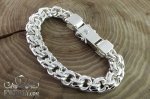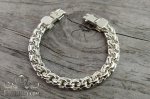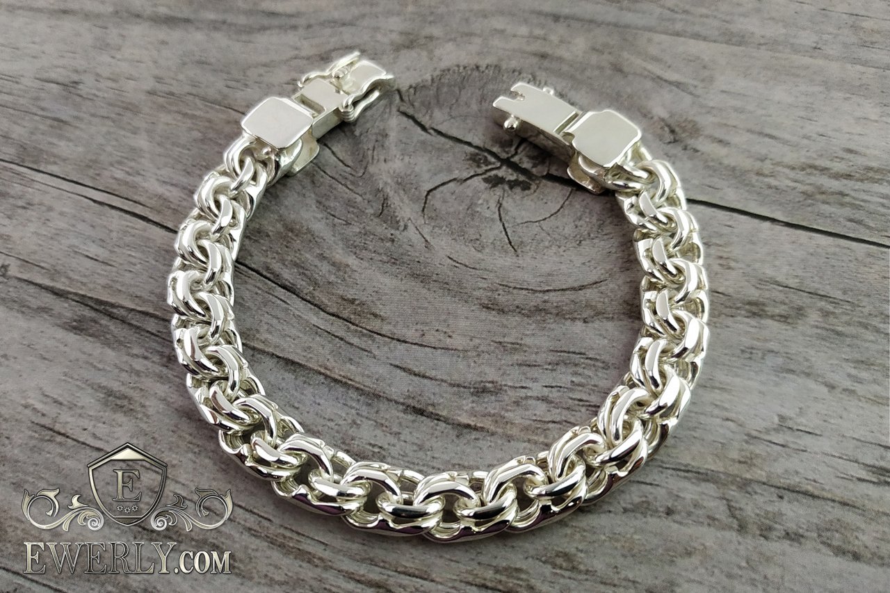 Полновесный браслет. На данной странице показан серебряный массивный мужской браслет из плетения Бисмарк с замком «Коробочка» с двумя фиксаторами, по желанию возможно установить другой замок или замок Коробочку с одним фиксатором. Также изготавливаем изделия под заказ по Вашим параметрам: масса, длина, ширина, покрытие.