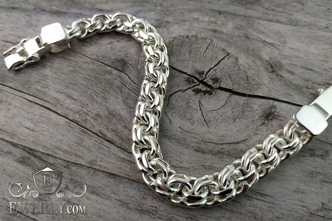 Массивный мужской серебряный браслет плетения Бисмарк