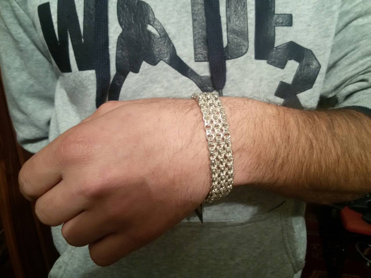 Полновесный браслет. Браслет изображённый на фото текущей страницы, как правило, пользуется спросом у мужского пола, а также женщин, которые делают подарки для мужчин, хотя изредка заказывают и себе, но в менее купных размерах.