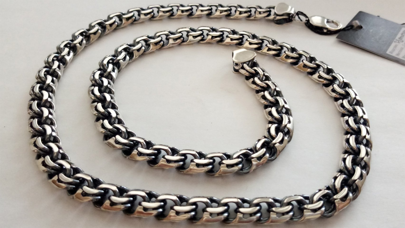 Полновесное плетение. Существует множество разнообразных плетений, и большинство ценителей ювелирных изделий знают, что самыми популярными остаются якорное плетение и Бисмарк, и их многочисленные разновидности. Именно этими цепями заполнены витрины ювелирных салонов и мастерских. Особой популярностью пользуется плетение Бисмарк — серебряные цепочки и браслеты с таким узором всегда выглядят солидно и современно.