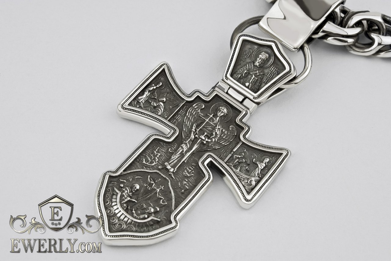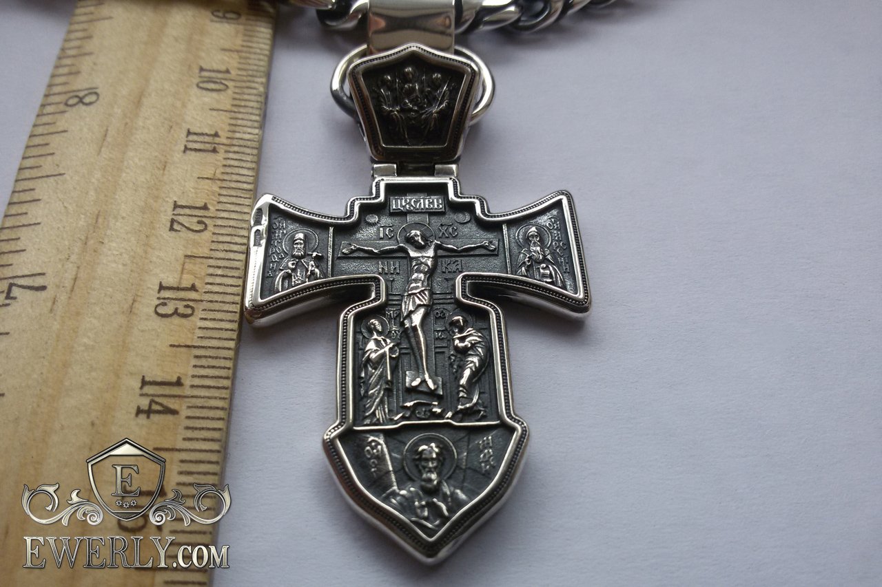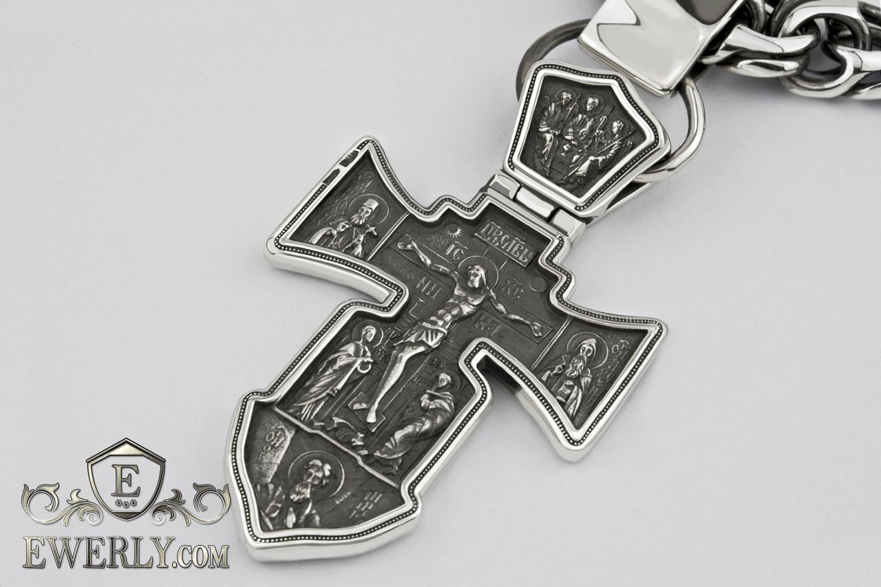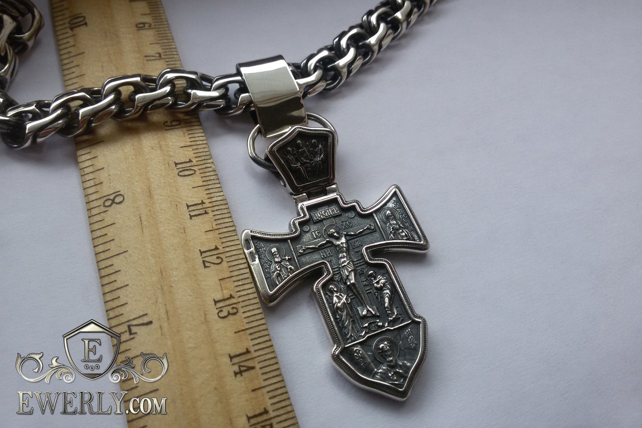 Видео в HD качестве - Мужской крест из серебра с чернением