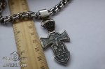 Одет на серебряную цепочку с плетением Московский бисмарк. Цена указана только за крест.