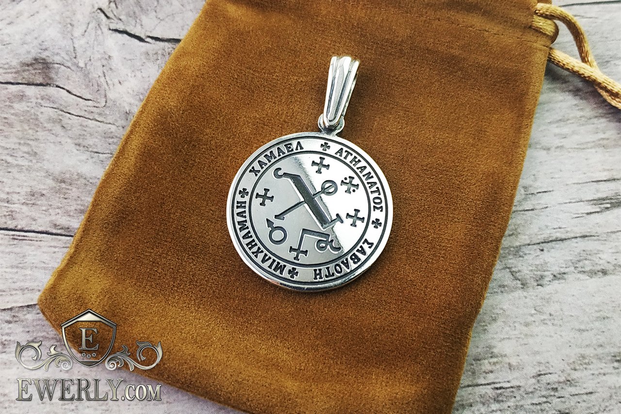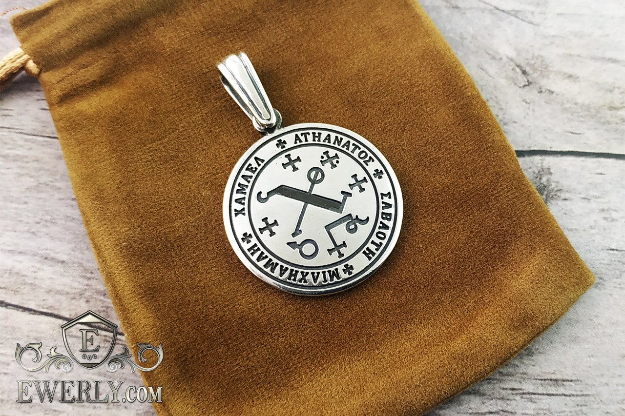 Подвеска-кулон из серебра "Пентакль архангела Камаэля (Самаэля)"