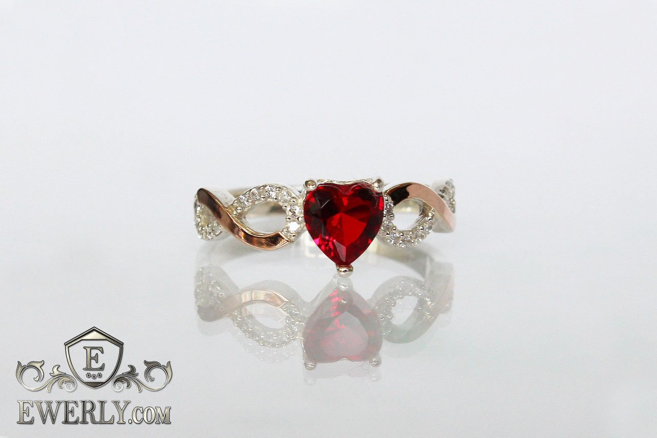 Основной материал — серебро 925 пробы, которое придаёт украшению благородный блеск. Изготовлено из серебра без покрытия с красным камнем и вставками из золота 375 пробы на узоре бесконечности, что в совокупности эффектно подчёркивает изысканность кольца, делая его настоящим произведением искусства.