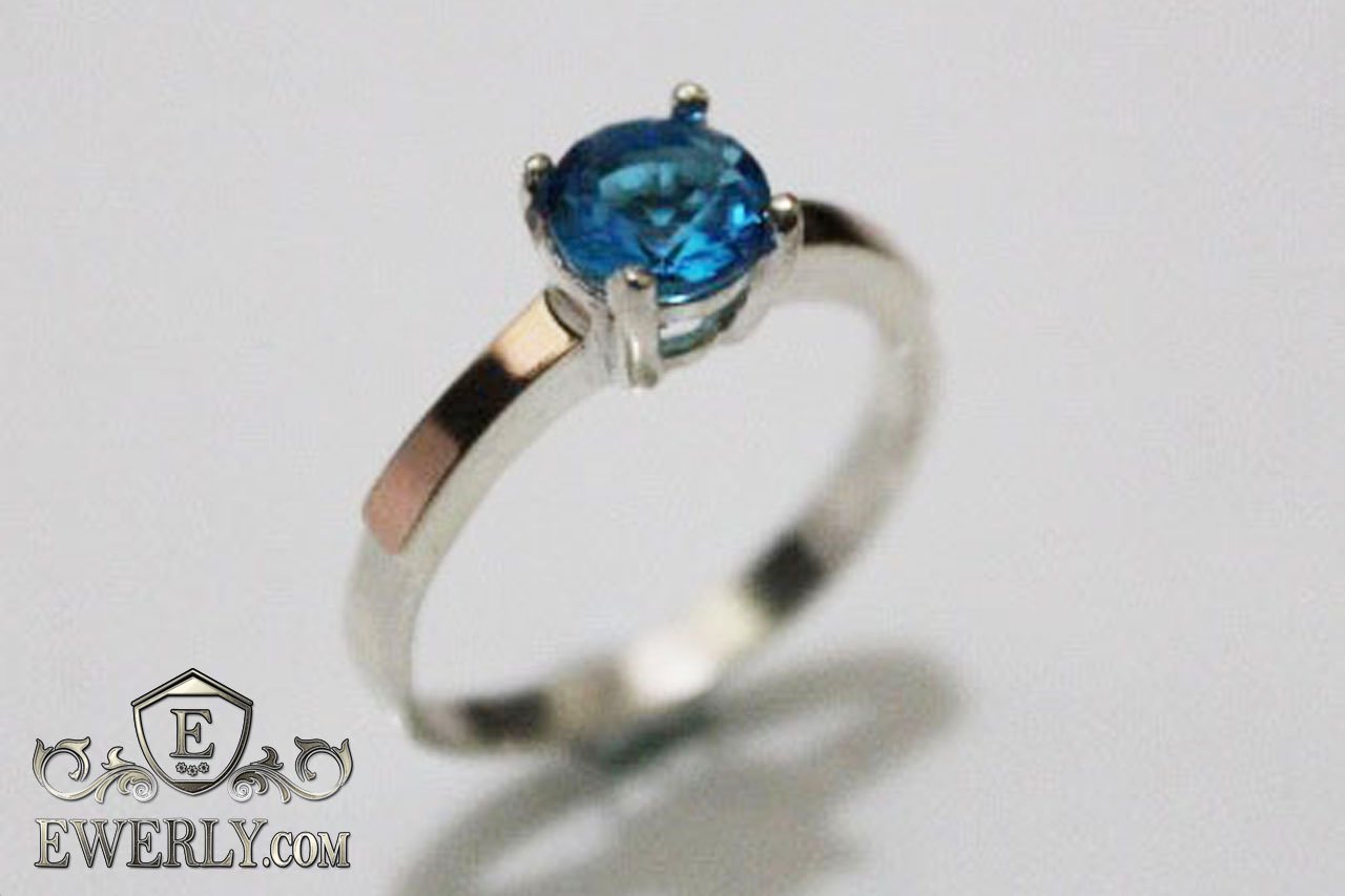 Женское серебряное кольцо 925 пробы с золотыми пластинами 375 пробы с фианитом (синий цвет).