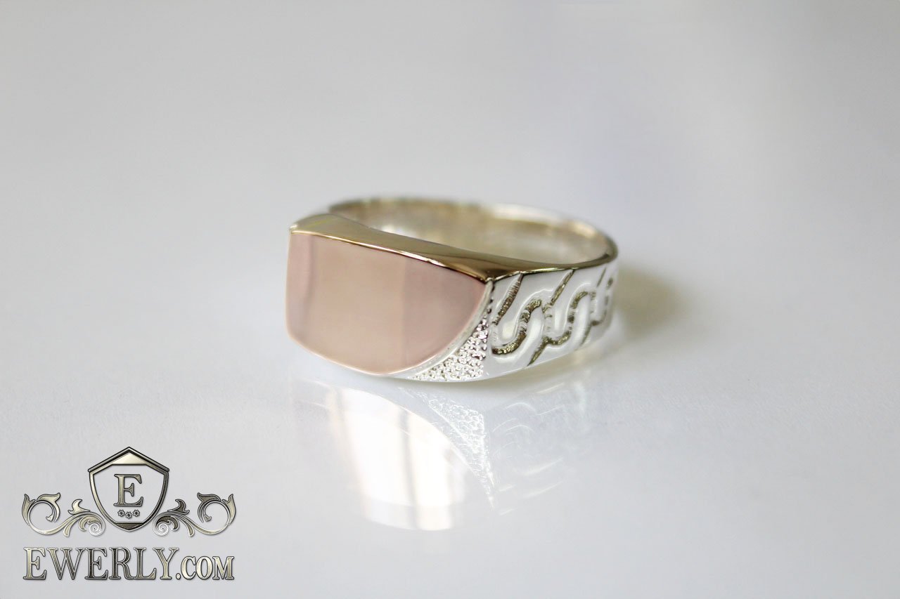 Мужской серебряный перстень с золотыми пластинами