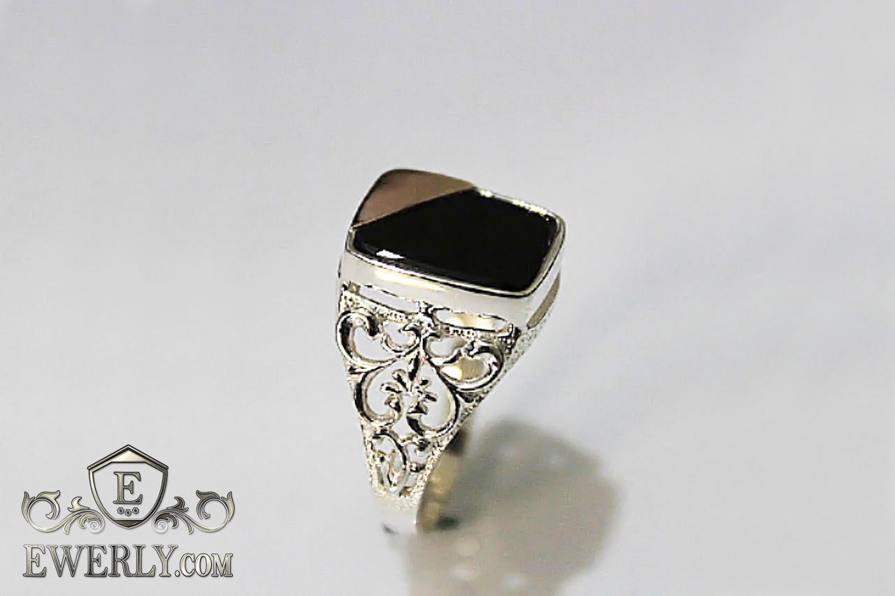 Мужской серебряный перстень с чёрным камнем - Ониксом