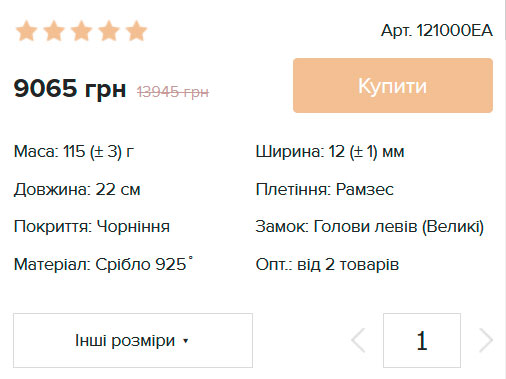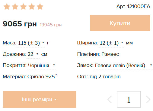 Для замовлення одного або декількох виробів Вам необхідно зайти на сторінку відповідного товару. На ній нас цікавить ось ця частина:
