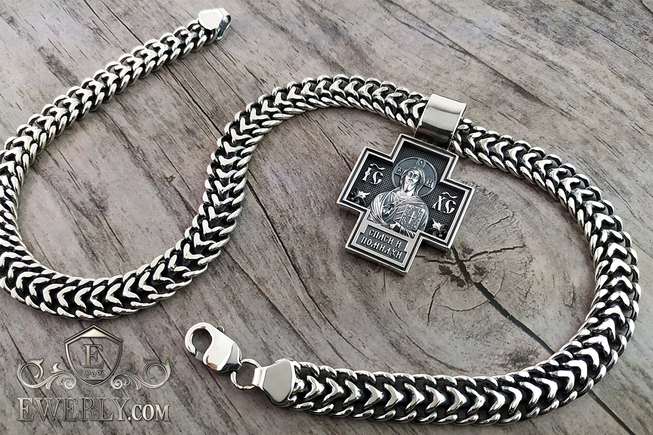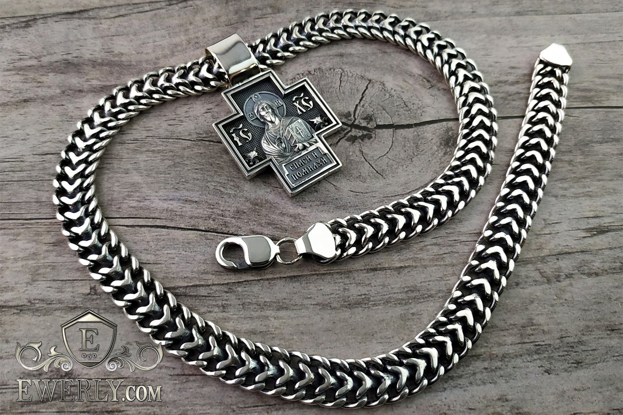 Чоловічий срібний ланцюг з хрестом натільним православним