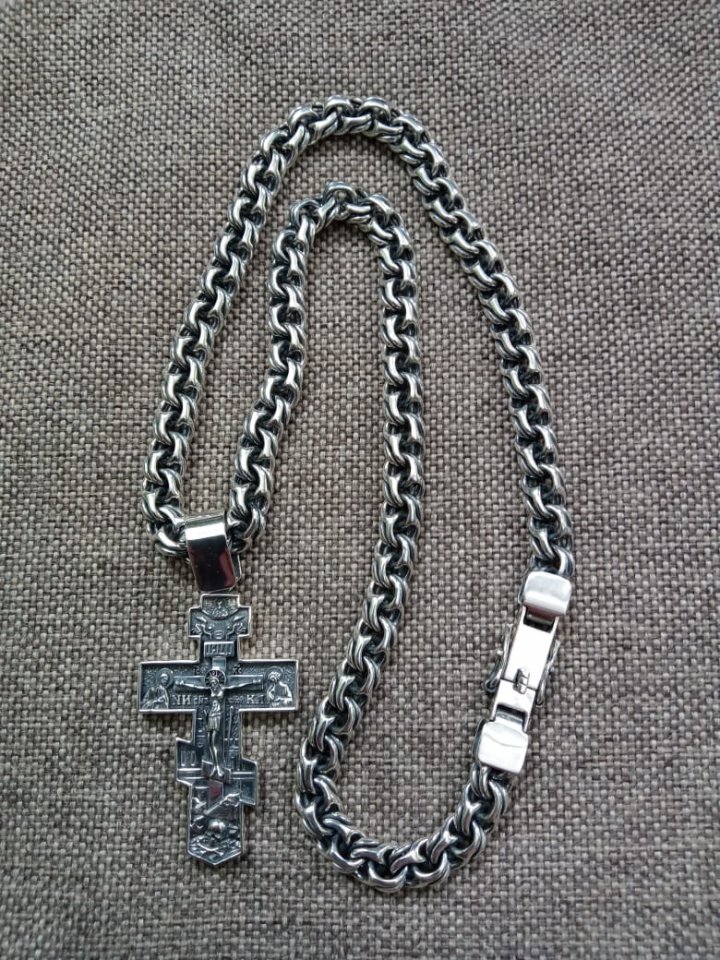 Відео в HD якості - Чоловічий срібний ланцюг з хрестом