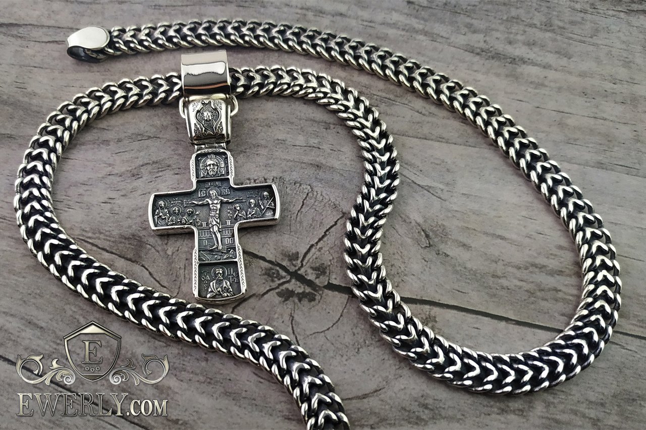 Набір: чоловічий срібний ланцюжок з хрестом зі срібла
