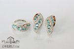 Жіночий набір: сережки і кільце зі срібла з золотом і світло-блакитним камінням