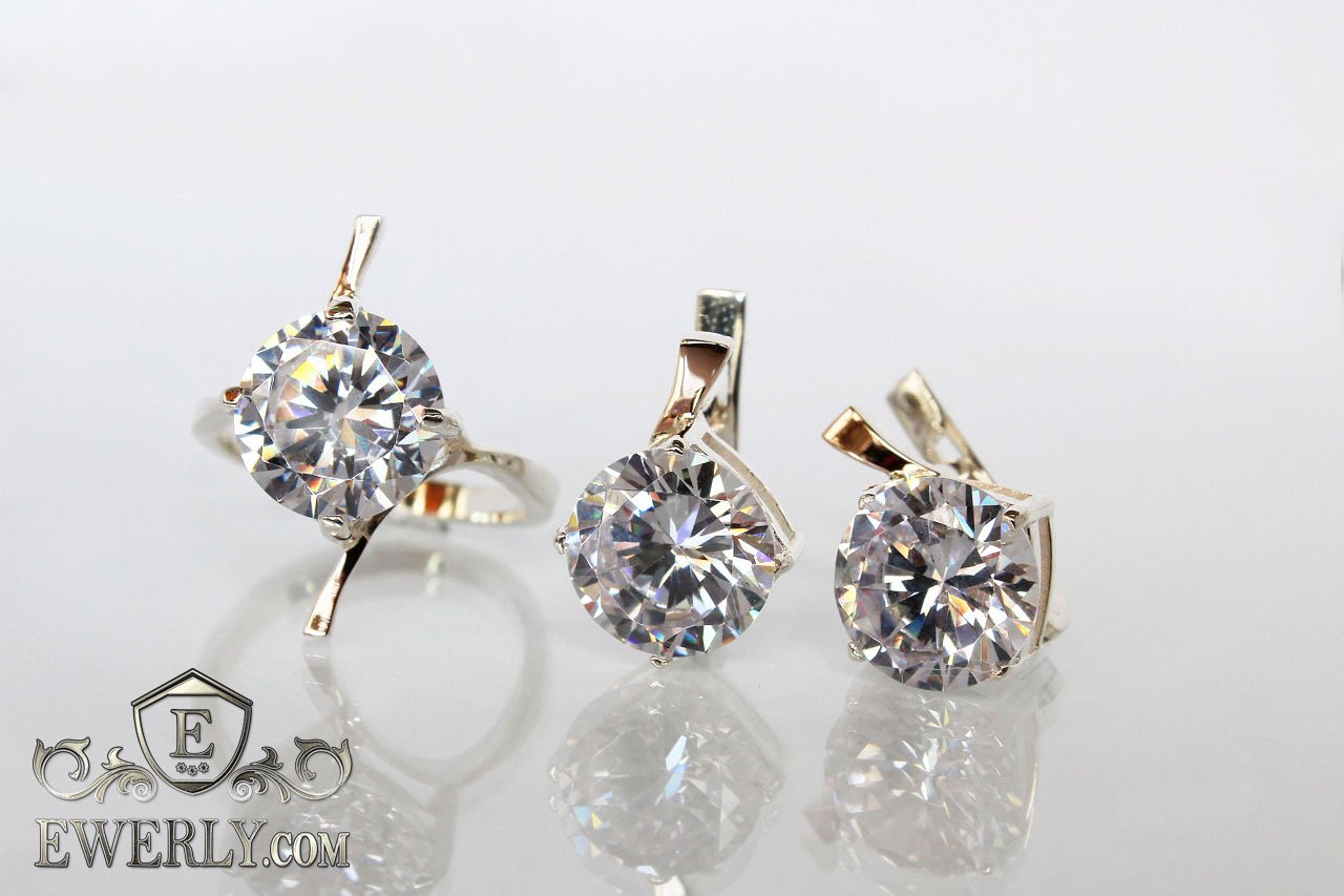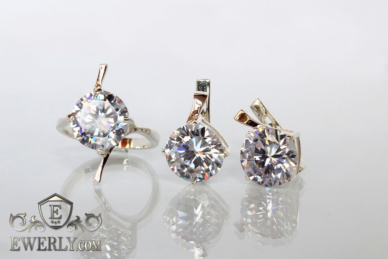 Жіночий набір: срібний перстень і сережки з білими каменями