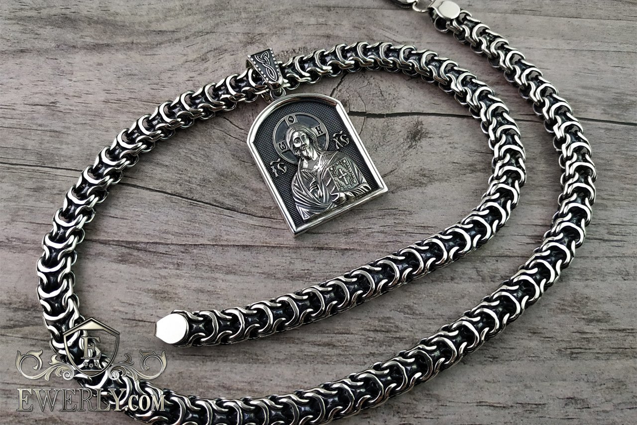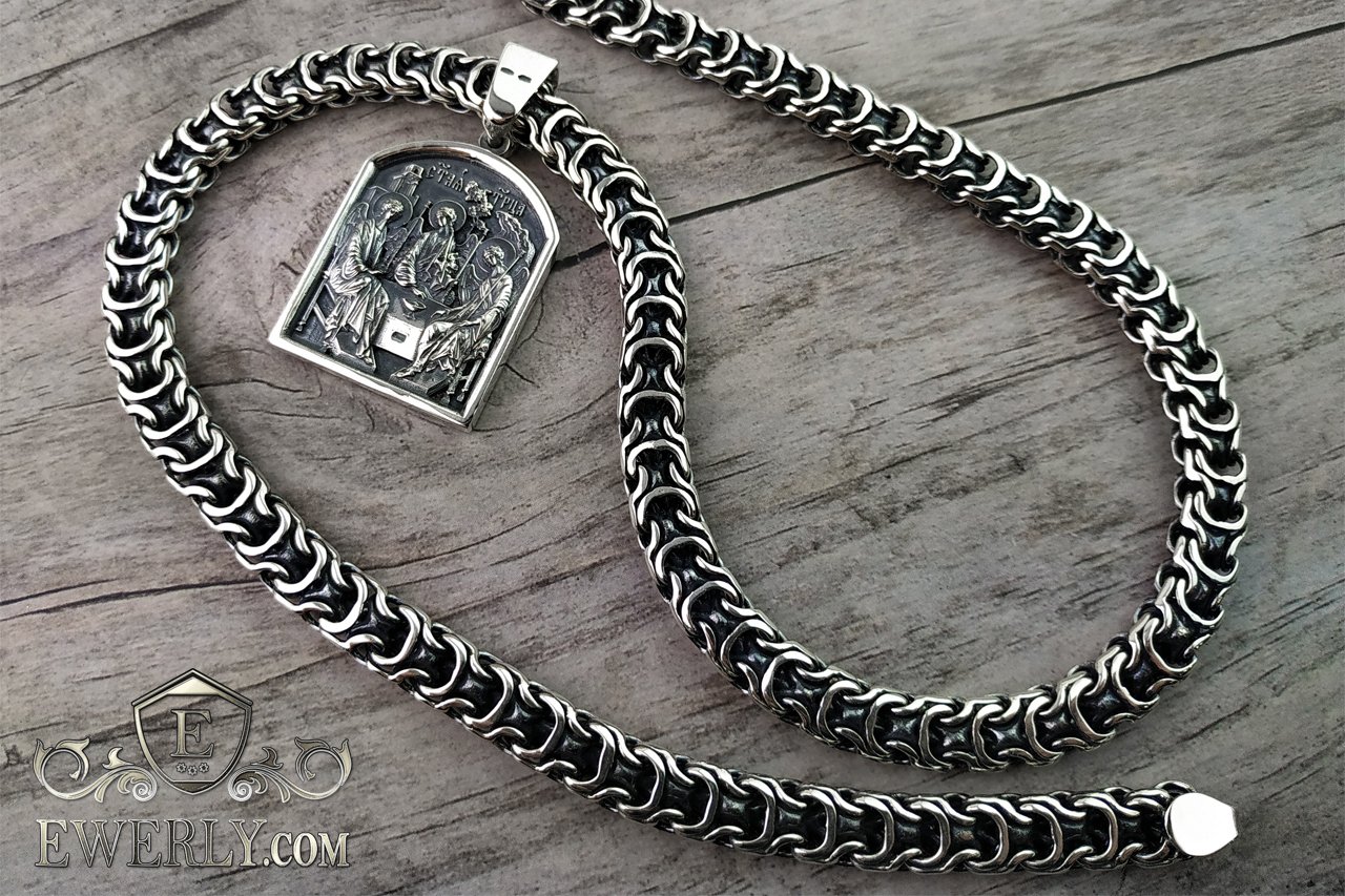 Срібний ланцюг Рамзес з ладанкою "Свята Трійця"
