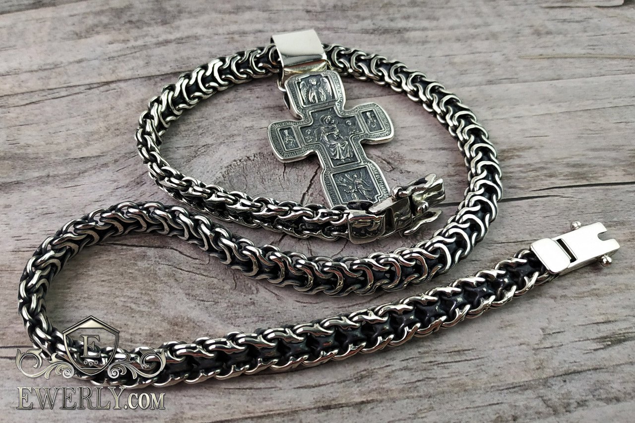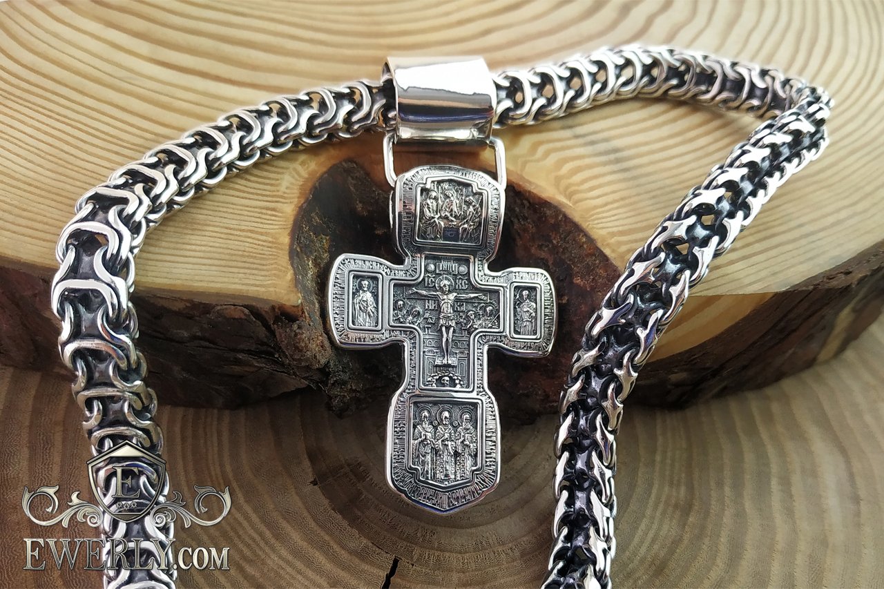 Чоловічий срібний ланцюжок Фантом з великим православним хрестом