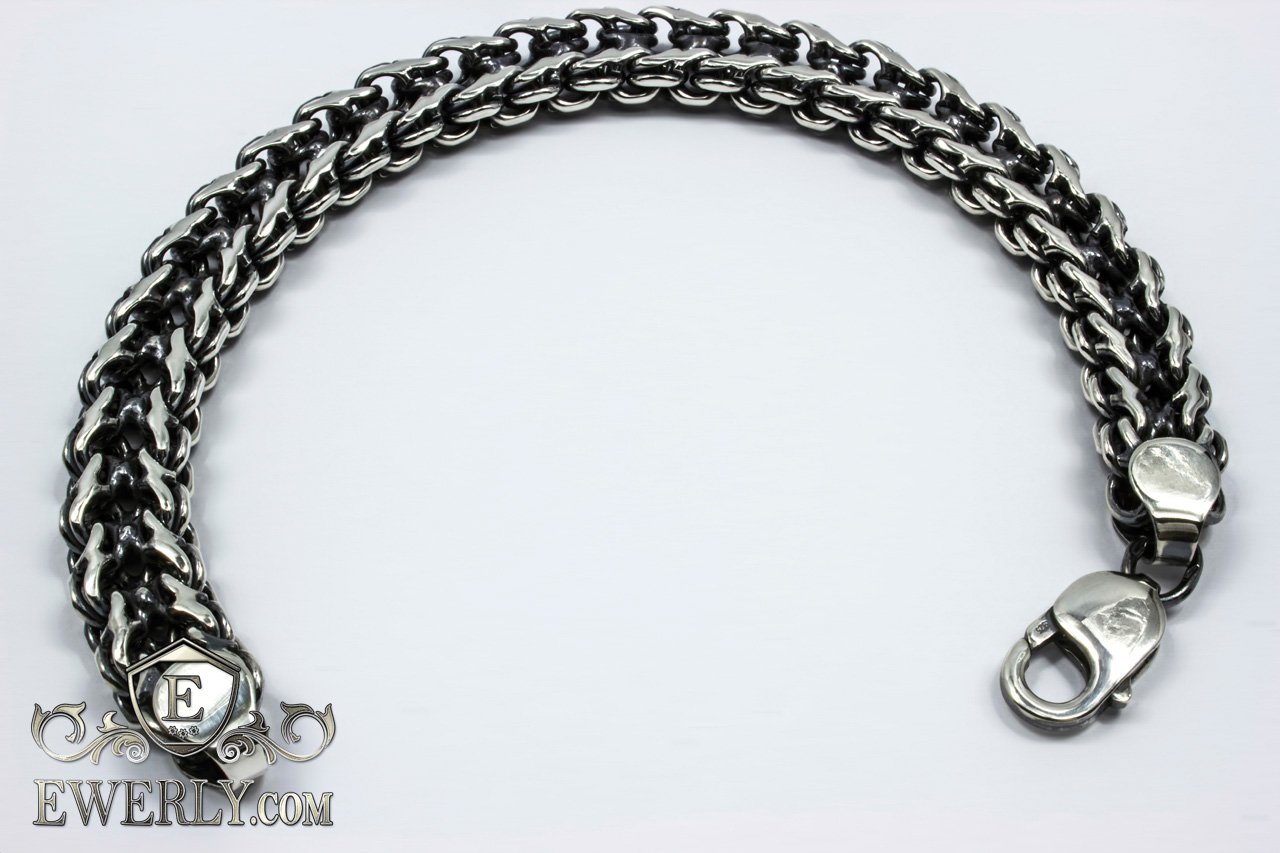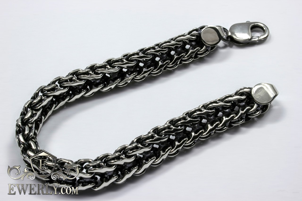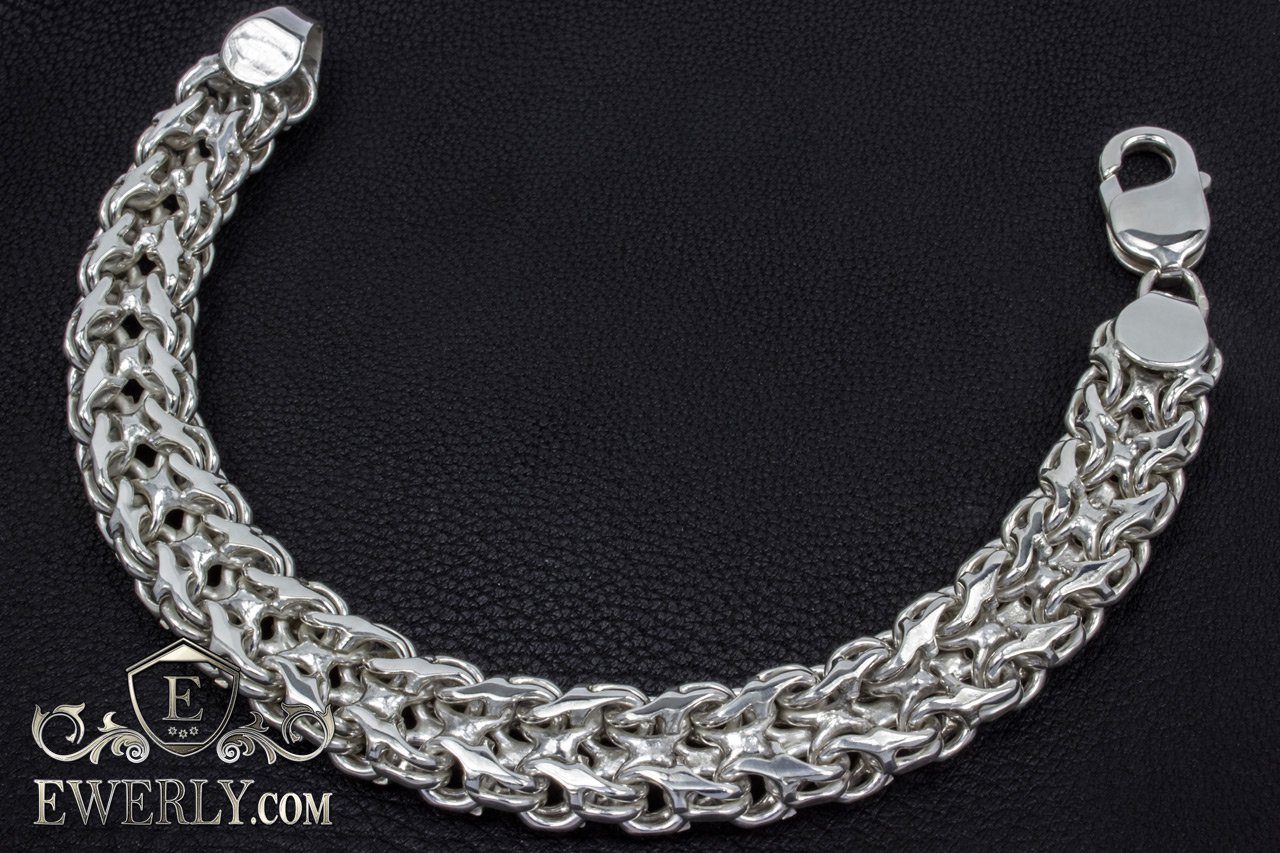 Повновісний срібний браслет на руку. Дане плетіння досить трудомістке у виконанні, і більшість ювелірів не володіють достатнім рівнем навичок у виготовленні, щоб досягти високої якості прикрас, не кажучи вже про те, щоб просто виготовити. На цей час якість наших робіт з цього плетіння значно перевершує більшості інших виробників.