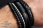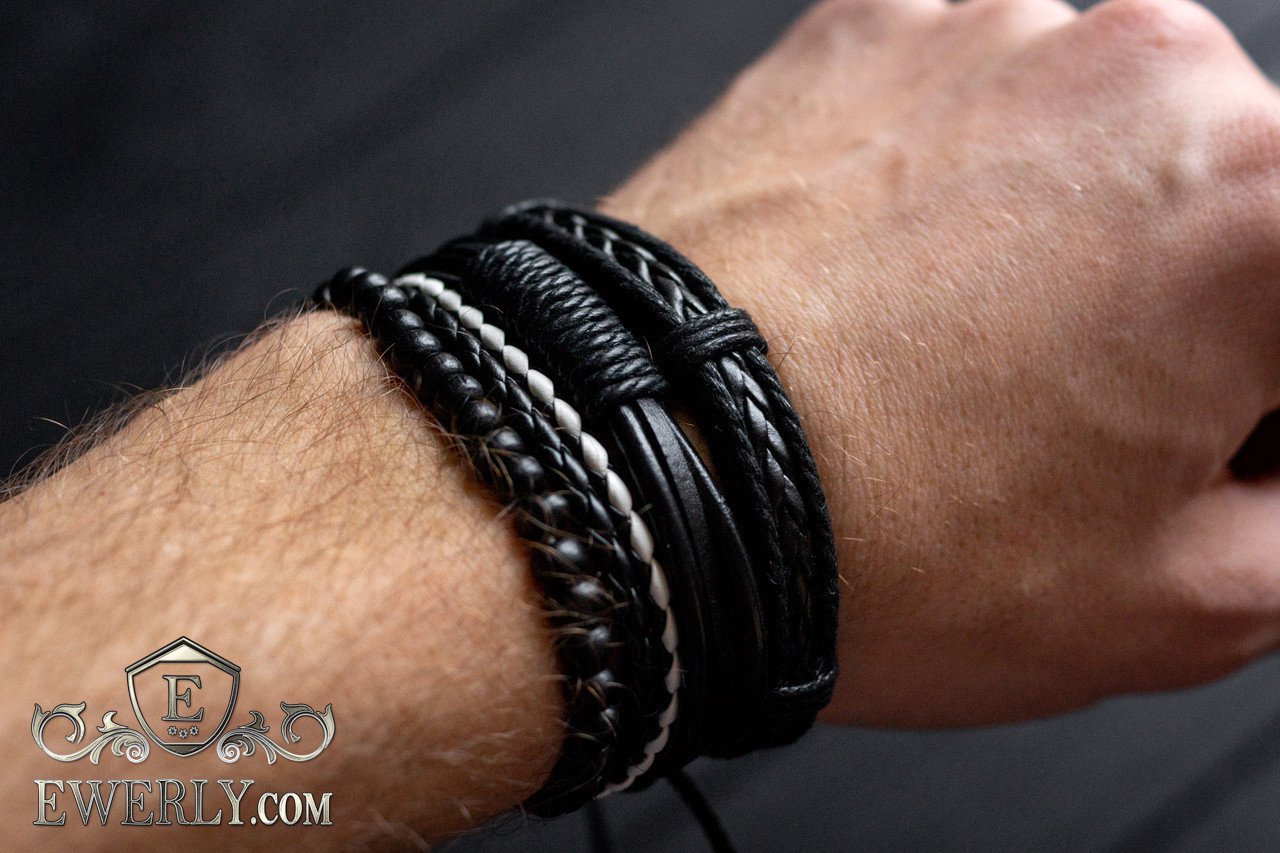 - Три чоловічих браслета зі шкіри та один браслет - намистини з якісного пластику