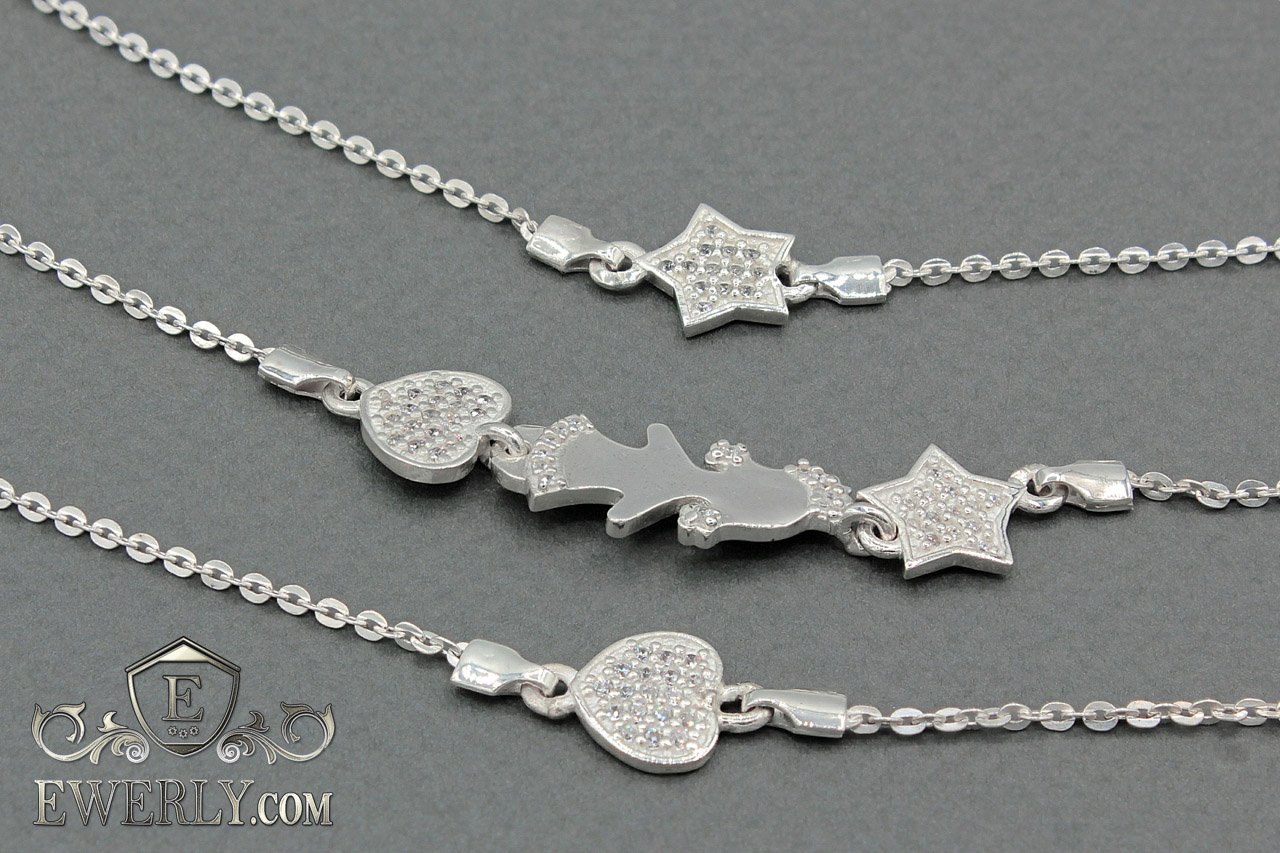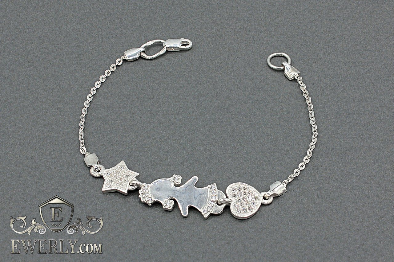 Повновісний браслет. Жіночий срібний браслет з підвіскою з білими фіанітами, відмінно буде виглядати на руці молодої дівчини або дитини.