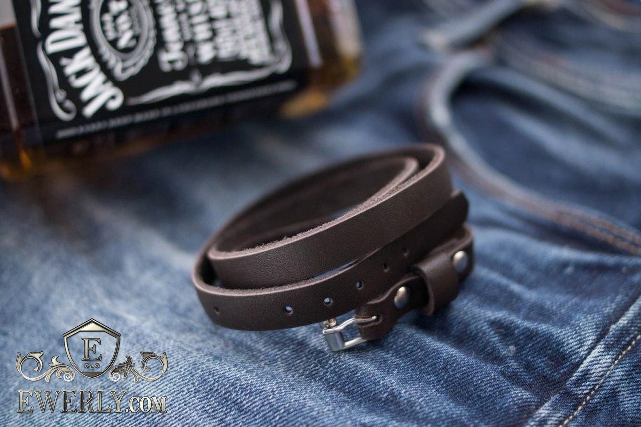 Браслет з натуральної шкіри чоловічий коричневий 124001OV