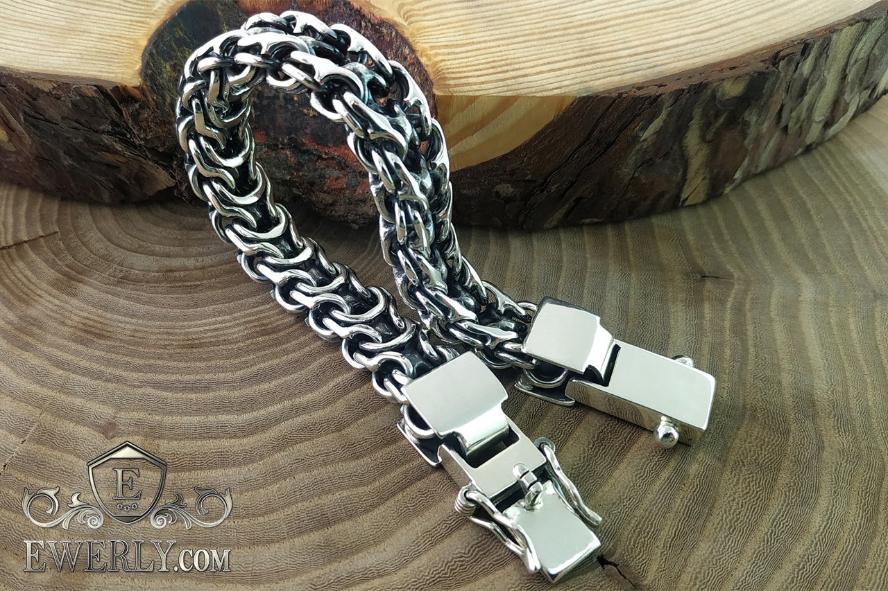 Чоловічий срібний браслет Фантом (Рамзес + Подвійний струмок)