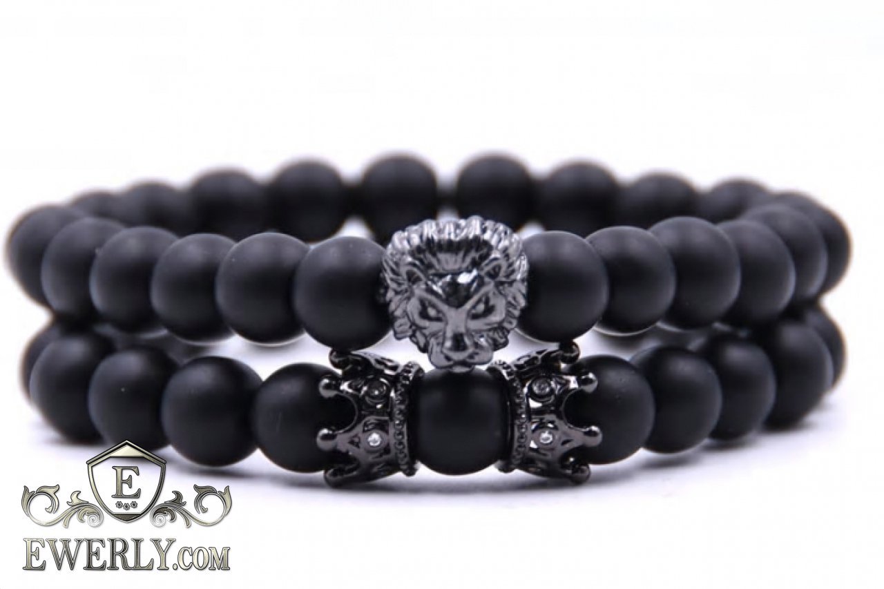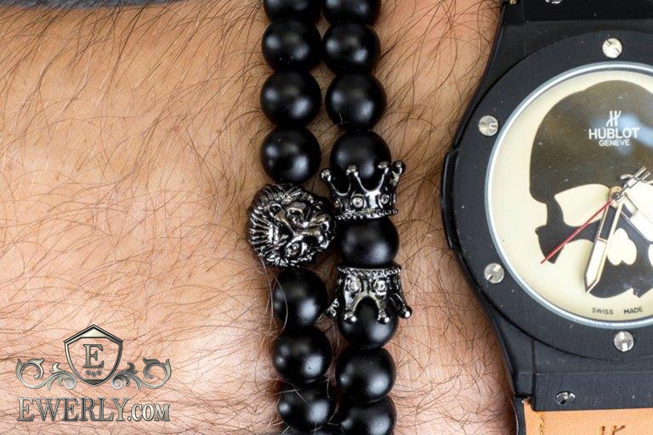 Чоловічий кам'яний браслет чорний на руку 123031NW