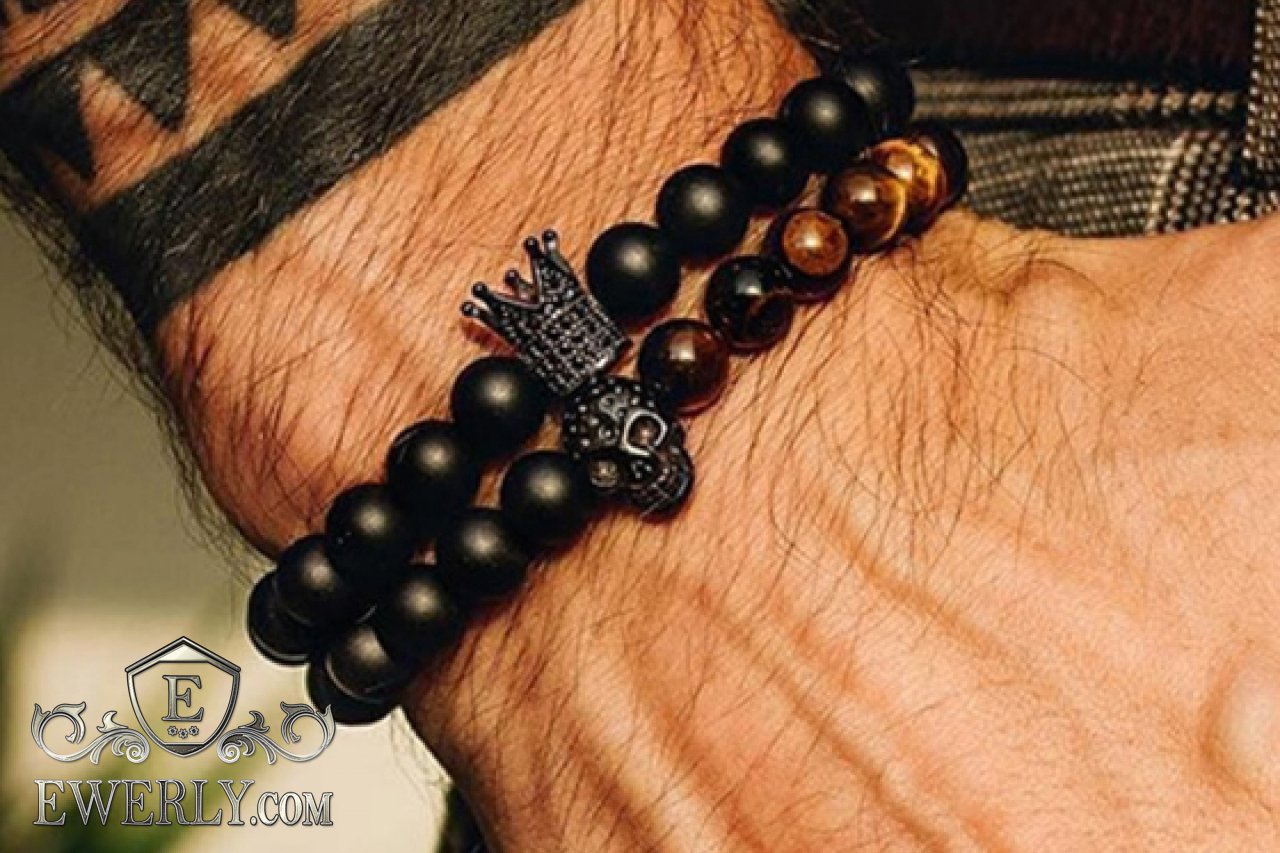 Комплект з двох чоловічих кам'яних браслетів 123057WS
