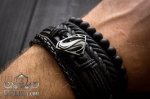 Чоловічий комплект браслетів зі шкіри та каменю 124012EC