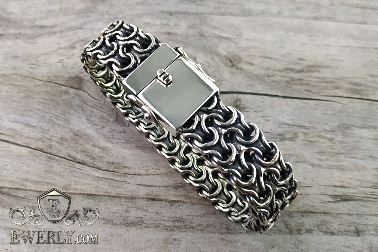 Повновісний браслет. Великий чоловічий браслет із срібла на руку "Подвійний Рамзес". Під виготовлення доступні практично будь-які розміри при масі, починаючи від 50 грам.